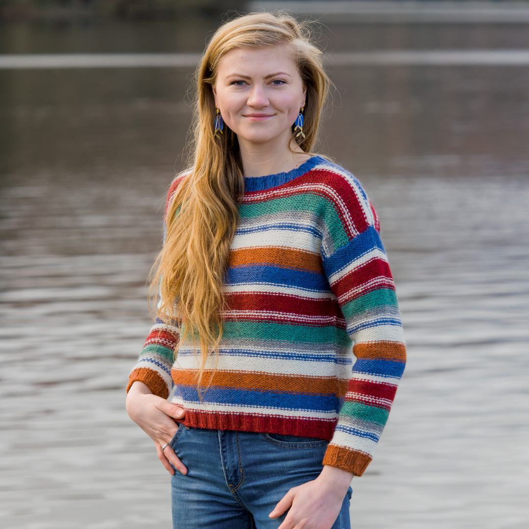 The All Stripes Sweater can be knitted in any &Make yarn and this kit is for the Aran option.