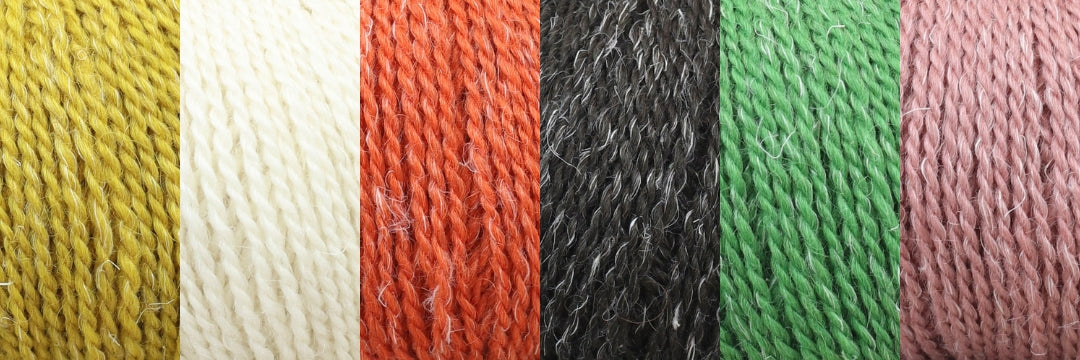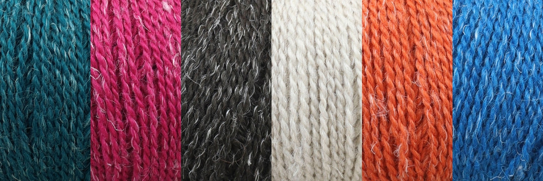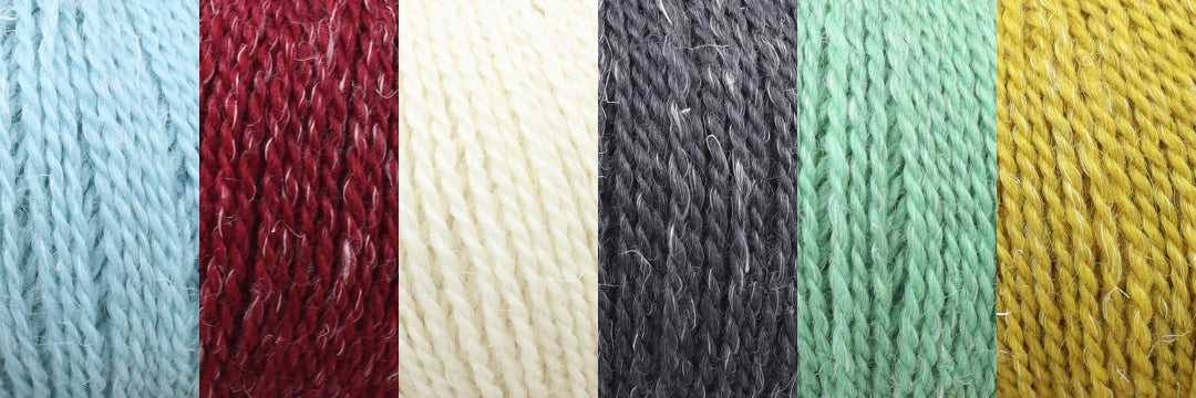 The Fibre Co. &Make DK (55% Highland wool, 35% alpaca, 10% linen, 125 m (137 yd) per 50 g ball) in shades Surf’s Up (A) – 3 (3, 3, 4, 4) (4, 4, 5, 5) balls, Mille Pink (B) – 2 (2, 2, 2, 3) (3, 3, 3, 3) balls, Mr. Toad (C) – 2 (2, 2, 2, 3) (3, 3, 3, 3) balls, Careless Whisper (D) – 2 (2, 2, 2, 2) (2, 2, 3, 3) balls, Lit (E) – 1 (1, 1, 1, 1) (1, 1, 2, 2) ball(s) and Hyper Blue (F) – 2 (2, 2, 2, 2) (2, 2, 3, 3) balls.