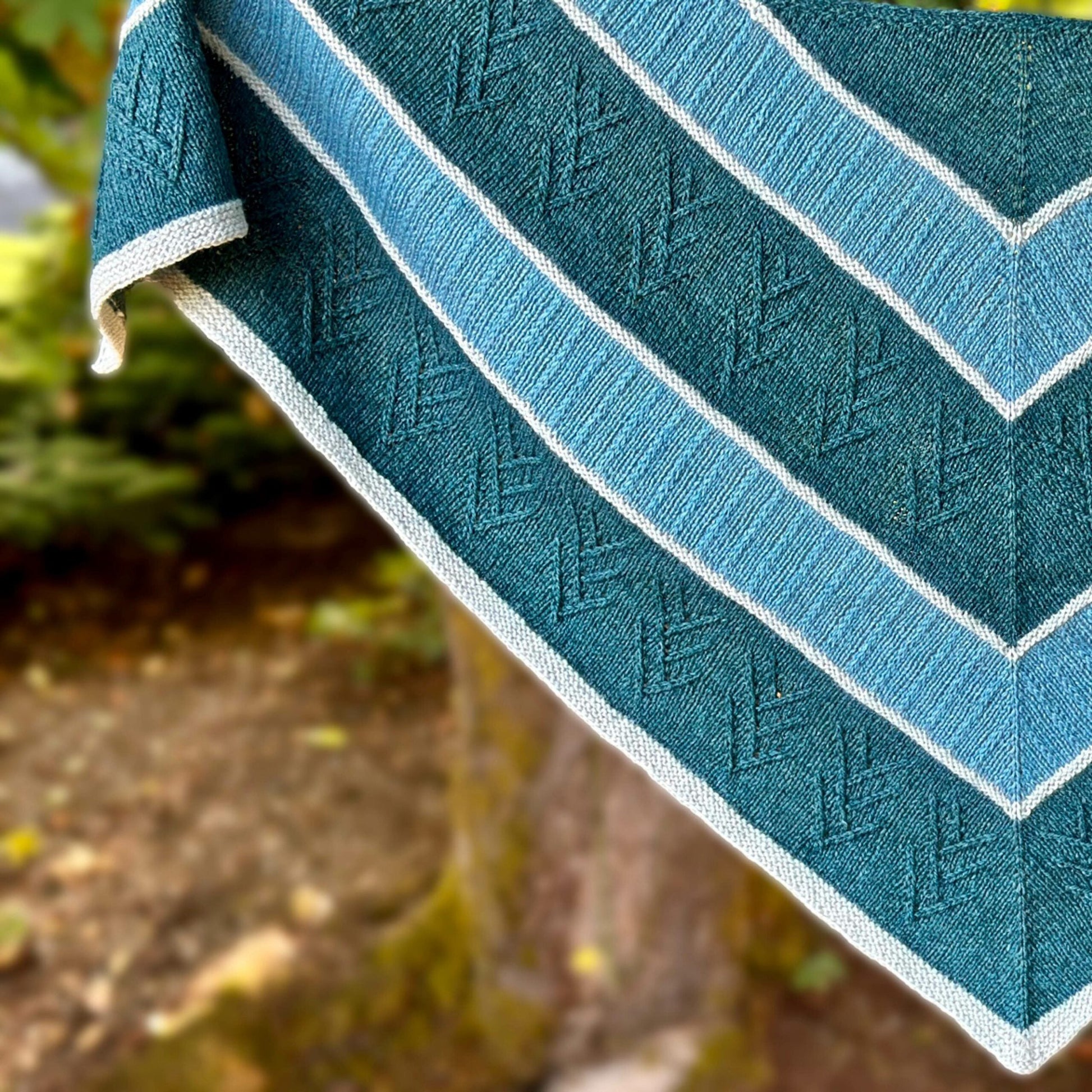 The Antler Shawl is a triangular-shaped shawl that features a unique stitchwork pattern and bold colorwork stripes. The stitch patterns are easy to follow, and there’s a video tutorial for the Antler stitch included in the pattern. With a choice of color combinations, you can select your preferred color scheme – from richly contrasting colors to monochrome and gradients. Picture wearing it as a stunning accessory on cool evenings or wrapping yourself in it while snuggling up with a good book in front of a fire.
