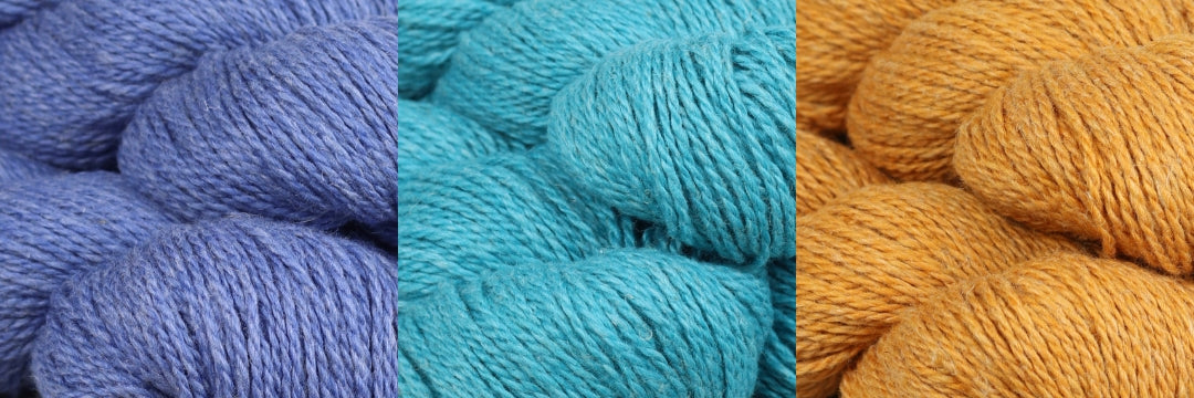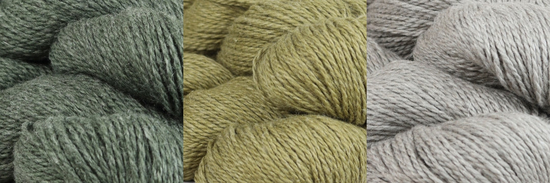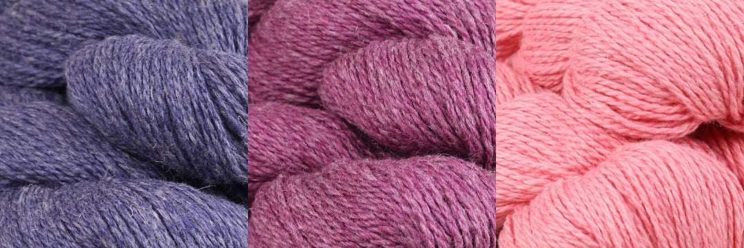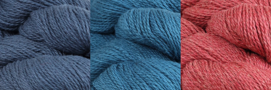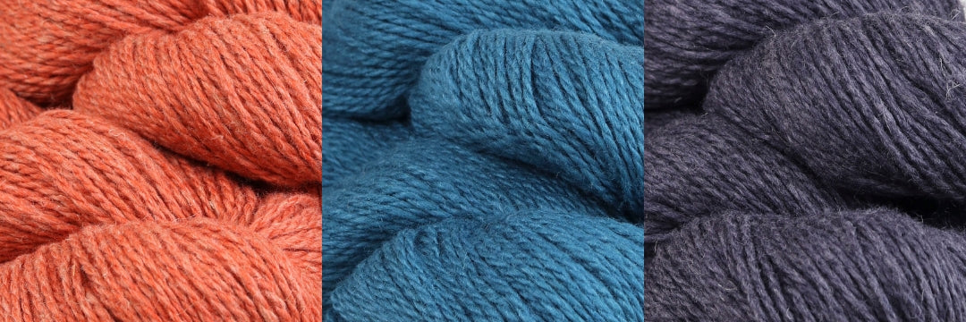 This kit uses our fingering weight yarn, Amble and there is also a three-color Antler Shawl kit in our DK weight yarn Luma available here.