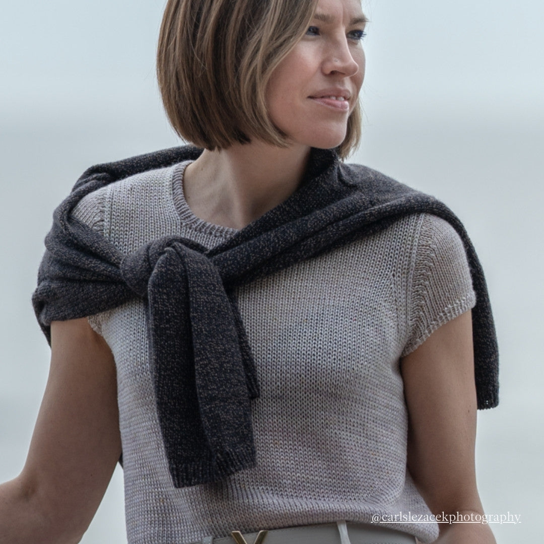 The Arpeggio Top Kit brings understated elegance to your wardrobe with a design that flows as effortlessly as its musical namesake. Inspired by the timeless fluidity of an arpeggio, this top is all about graceful lines and versatile styling—perfect for everything from casual days to more refined occasions. Designed by Zanete Knits, the Arpeggio Top is worked seamlessly from the top down, offering a smooth, engaging knitting experience. The pattern includes two sleeve options to suit your style and season: a sleek sleeveless tank or a refined set-in sleeve with short-row shaping at the cap. With clean lines and thoughtful construction, this modern classic invites knitters to enjoy both the process and the result.
