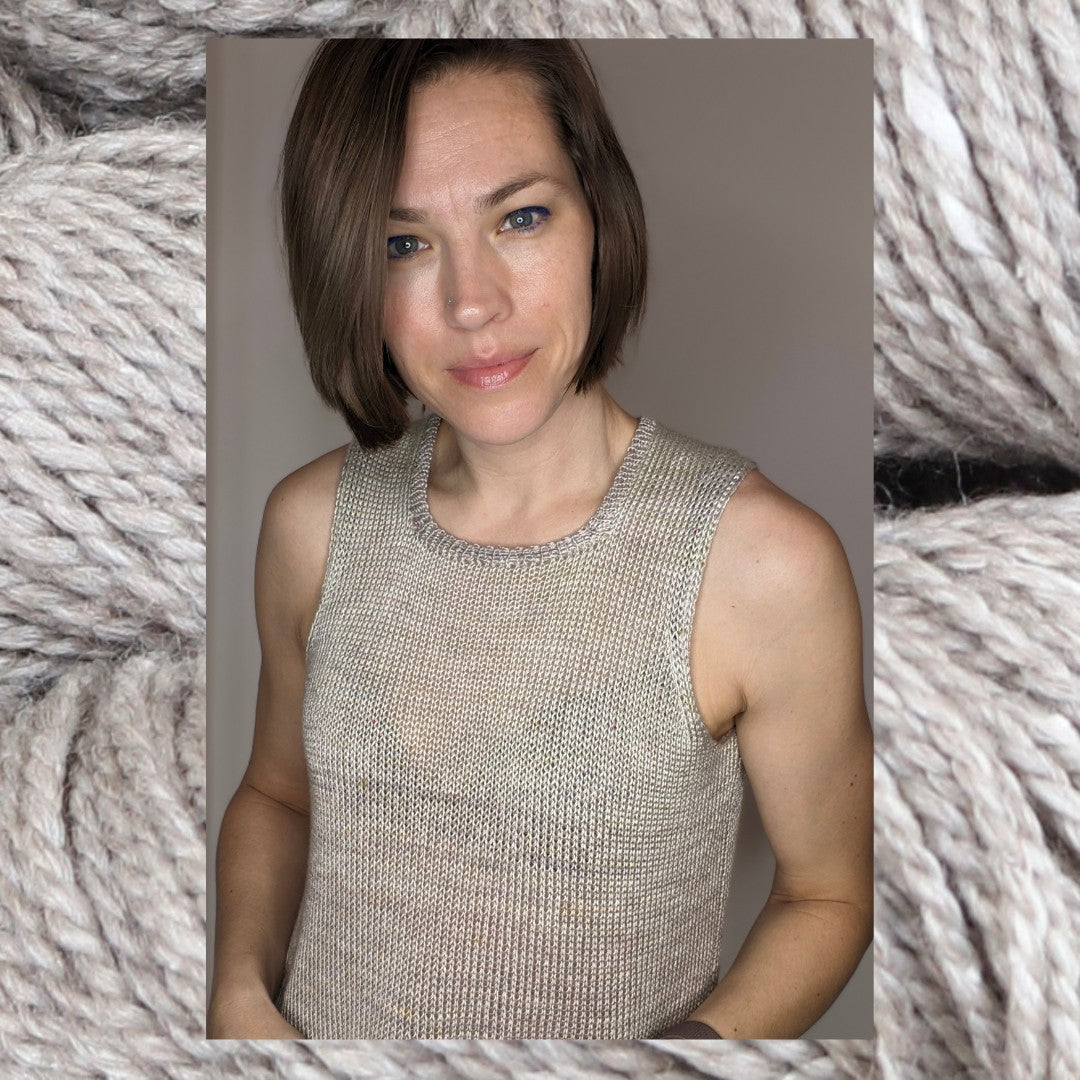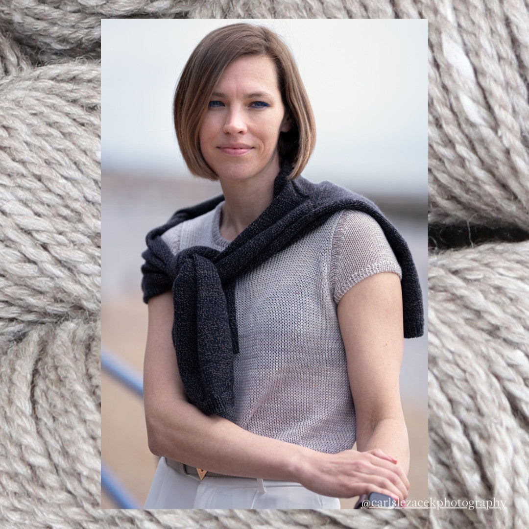 This kit features The Fibre Co.'s Acadia, a rustic-luxury DK-weight yarn that adds depth and texture to the Arpeggio Top. Blending merino wool, baby alpaca, and silk noil, Acadia offers a soft hand, subtle tweed effect, and excellent drape—ideal for showcasing the top’s elegant silhouette. The silk noil gives the fabric a delicate texture that complements the top’s simple sophistication, while the alpaca lends warmth and softness, making this piece a year-round favorite.