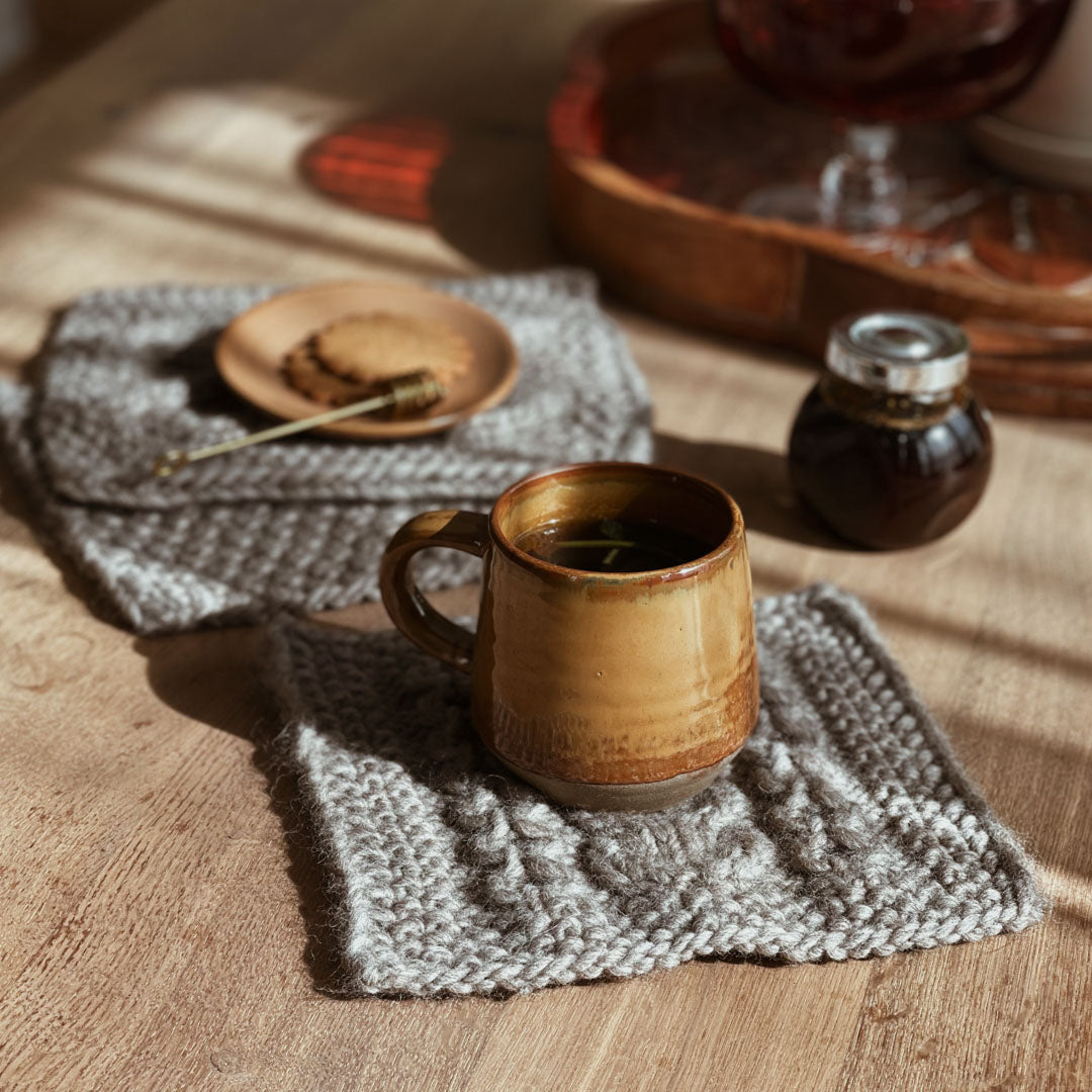 Made with &Make Super Bulky, a fat, singly-ply 100% Highland wool in a glorious range of cheerful colors, the Chunky Comfort Trivets are fun to make and will knit up in no time. Pick your favorite colors and have a blast knitting a whole group of these trivets!