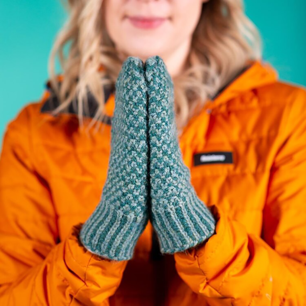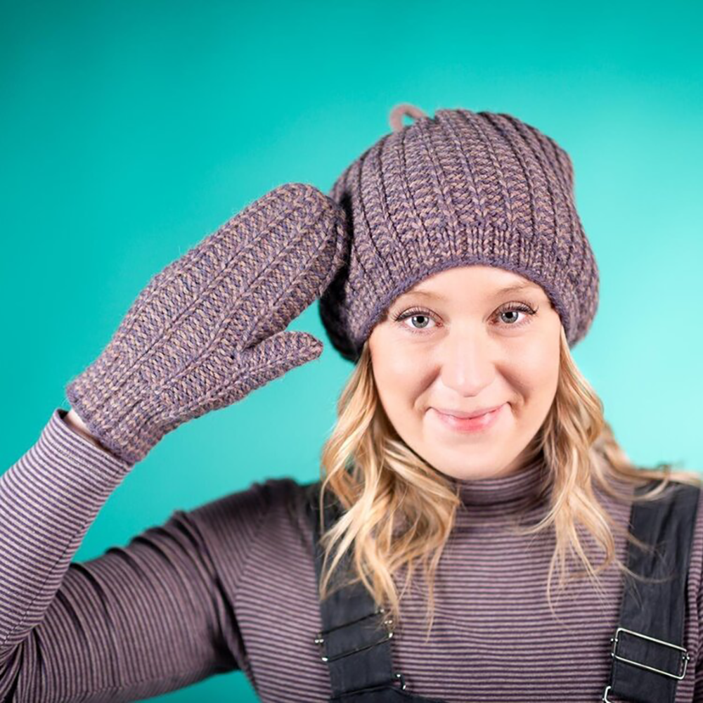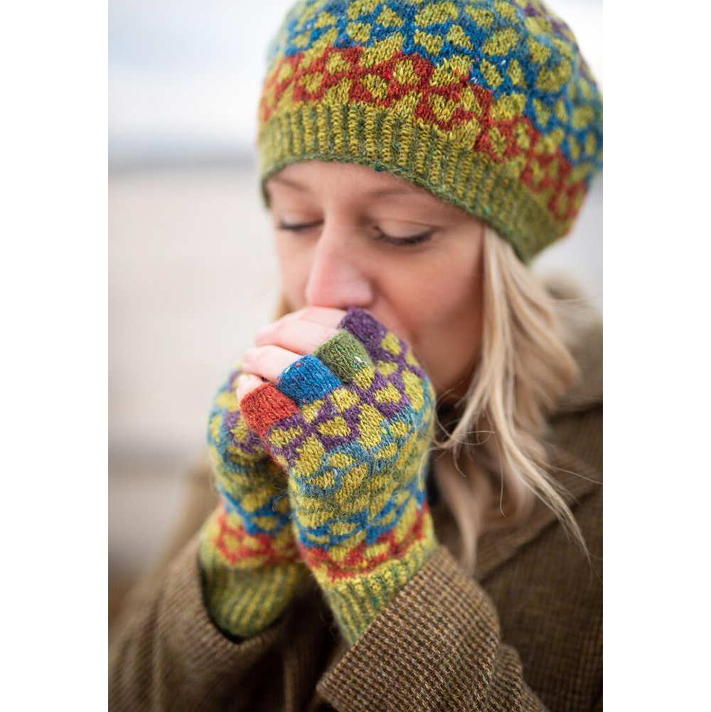 From the 17 patterns included here, you might choose to knit a pair of elegant gloves; a long circular snood; a tam with a kaleidoscopic crown; or one of 5 different matching sets for head and hands.