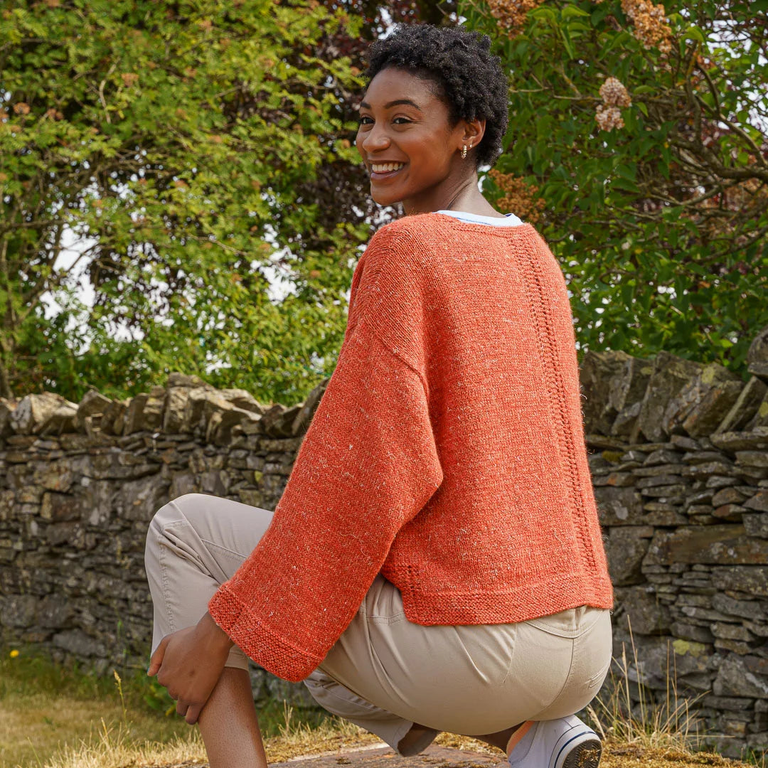 The Fibre Co. &Make DK (55% Highland wool, 35% alpaca, 10% linen, 125 m (137 yd) per 50 g ball) in shade Lit – 8 (9, 10, 11, 12) (13, 14, 14, 15) balls.