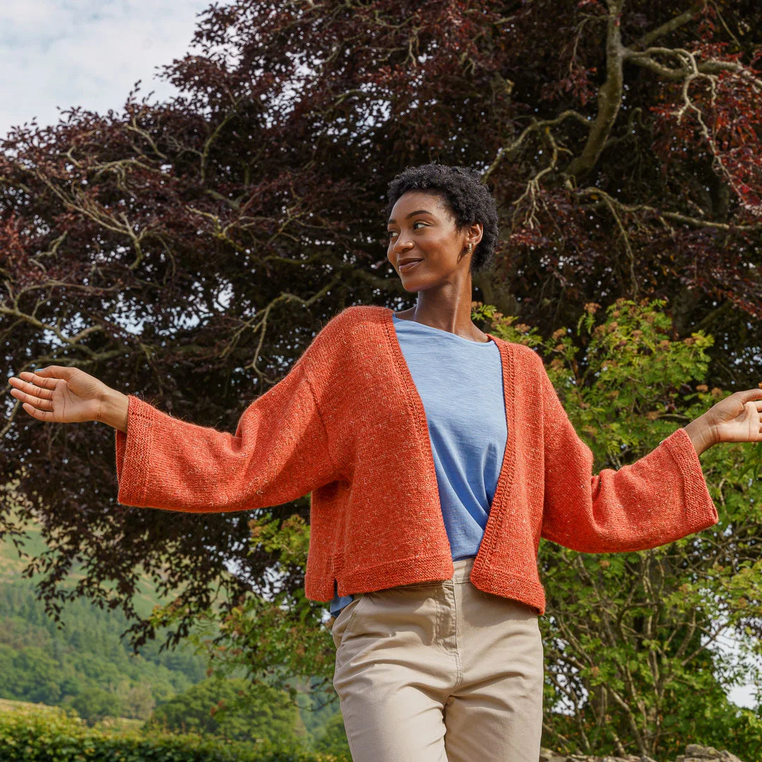 Meet your new summer fling—the Connections Cardy! This lightweight open cardigan is a delightful dalliance for those adventurous souls at the beginning of their knitting adventure. With a touch of playful elegance, it features eye-catching eyelet details, breezy open sleeves, and a choice of a classic or split hem—all coming together to make it irresistibly charming.