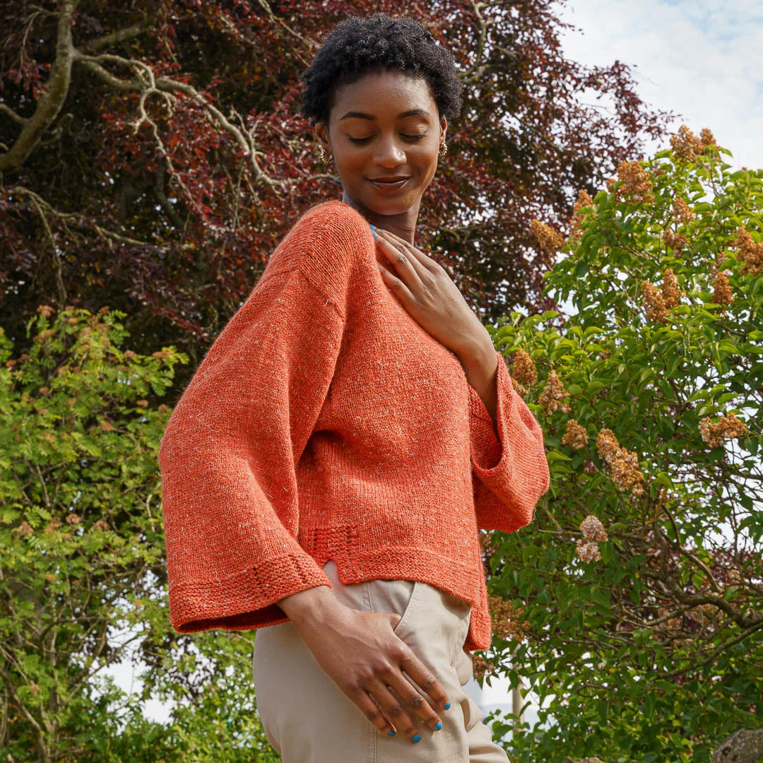 Designed in The Fibre Co.’s fabulous &Make DK blend of Peruvian Highland wool, alpaca, and linen, this cardy is more than a garment; it’s a cuddle in yarn form. The trio of natural fibers brings a comforting embrace and soft drape to the cardy. So, embark on a joy-filled knitting journey, and allow the Connections Cardy to be the charming outcome of your creative romance. Let’s make something lovely together!