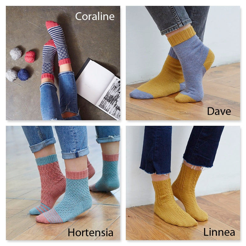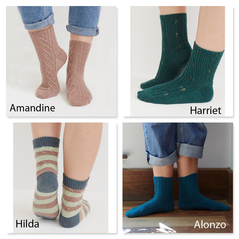 All the designs are written for CoopKnits Socks Yeah! yarn, but if you are feeling a little adventurous, we have a few other ideas for yarns that may tickle your fancy.