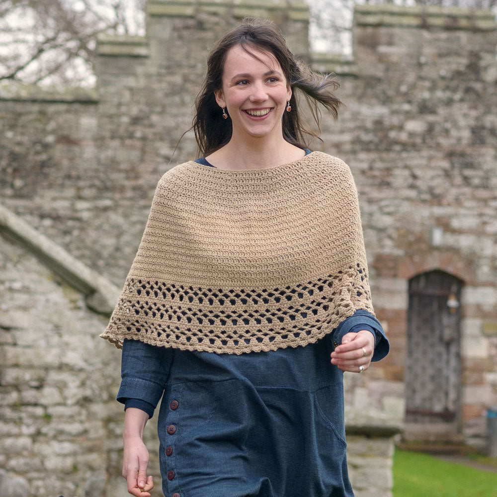 Worked in one piece this beautiful crochet piece shows off Luma and results in a modern versatile accessory that is very easy to style and wear. Using a range of simple crochet stitches this project is a wonderful way to practice your crochet skills on a larger piece. Instructions are provided for both poncho and stole.