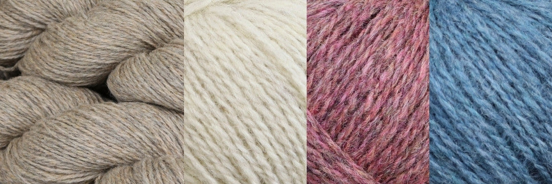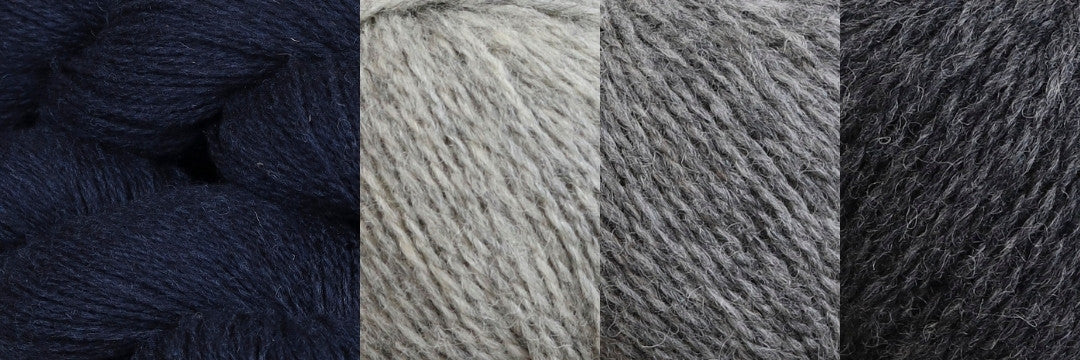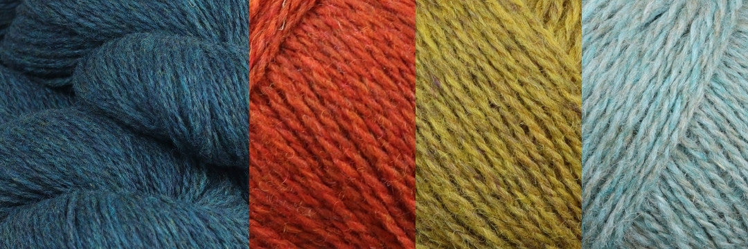 Deep Sea Dickie uses Lore skeins for the main body and Lore minis for the weaving pattern, held double throughout. This honest woollen-spun yarn is made from 100% Kent lambswool that is sourced and produced in England. It blooms beautifully after washing making it perfect for this colorwork project.