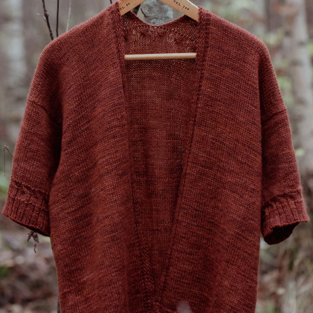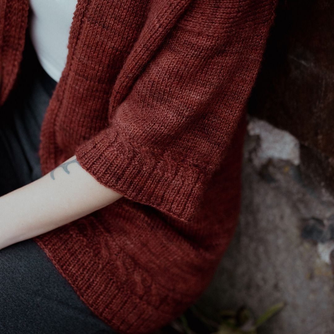 Dusk Cardigan Kit does not include the pattern, but it is available externally here.