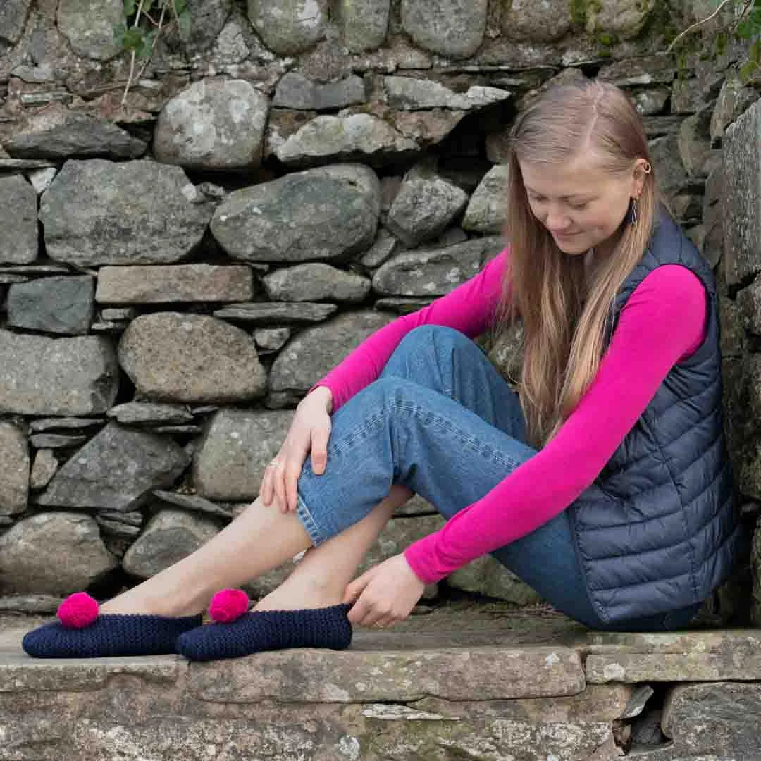 The soft enveloping warmth of &Make Super Bulky, made from 100% Peruvian Highland wool, makes these slippers a truly luxurious and serene foot experience.