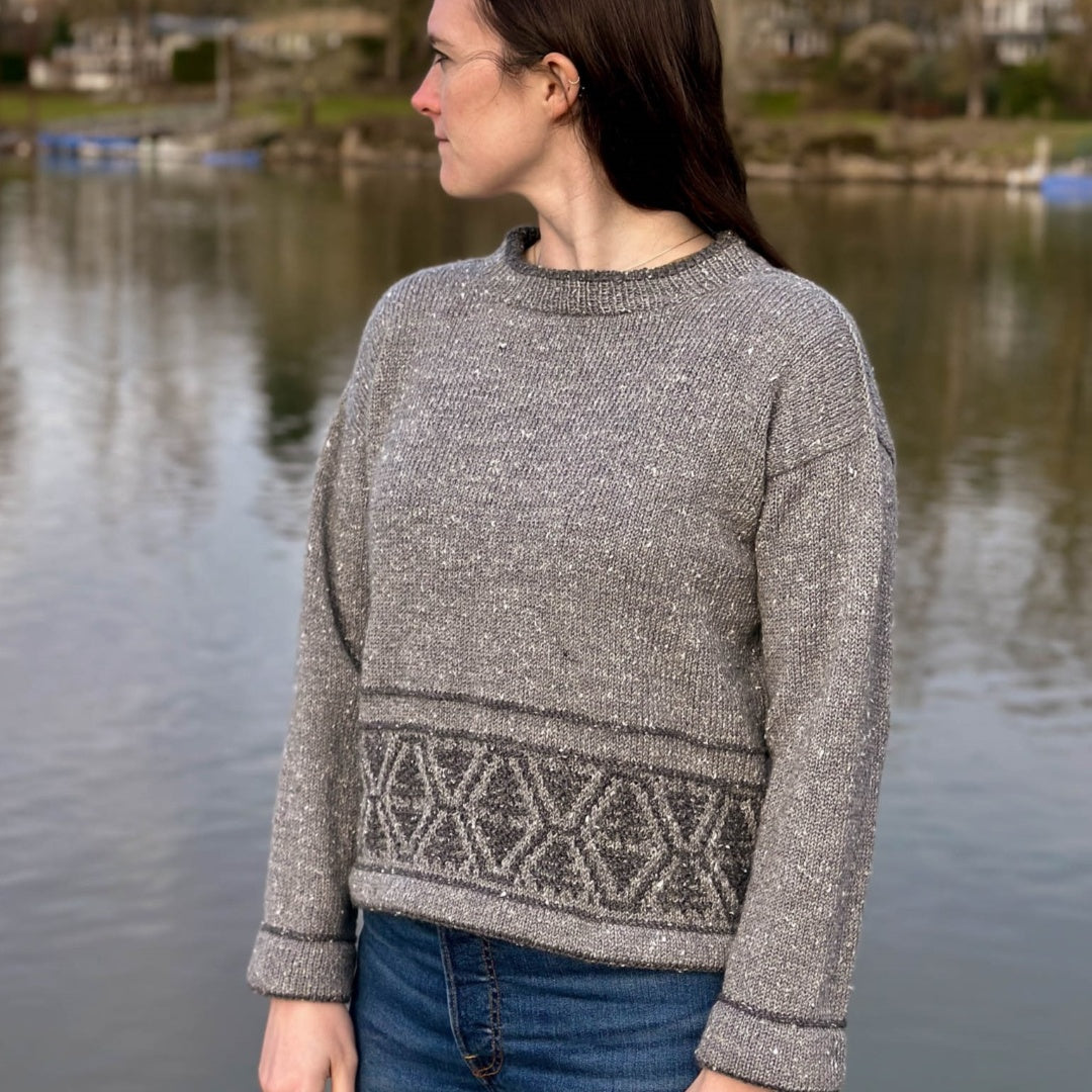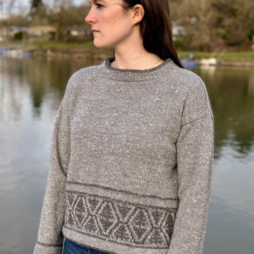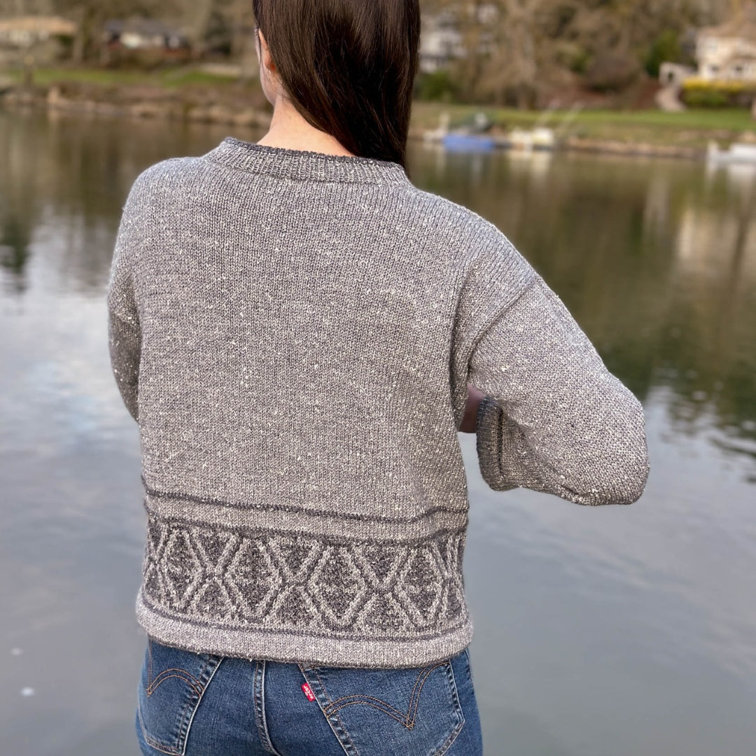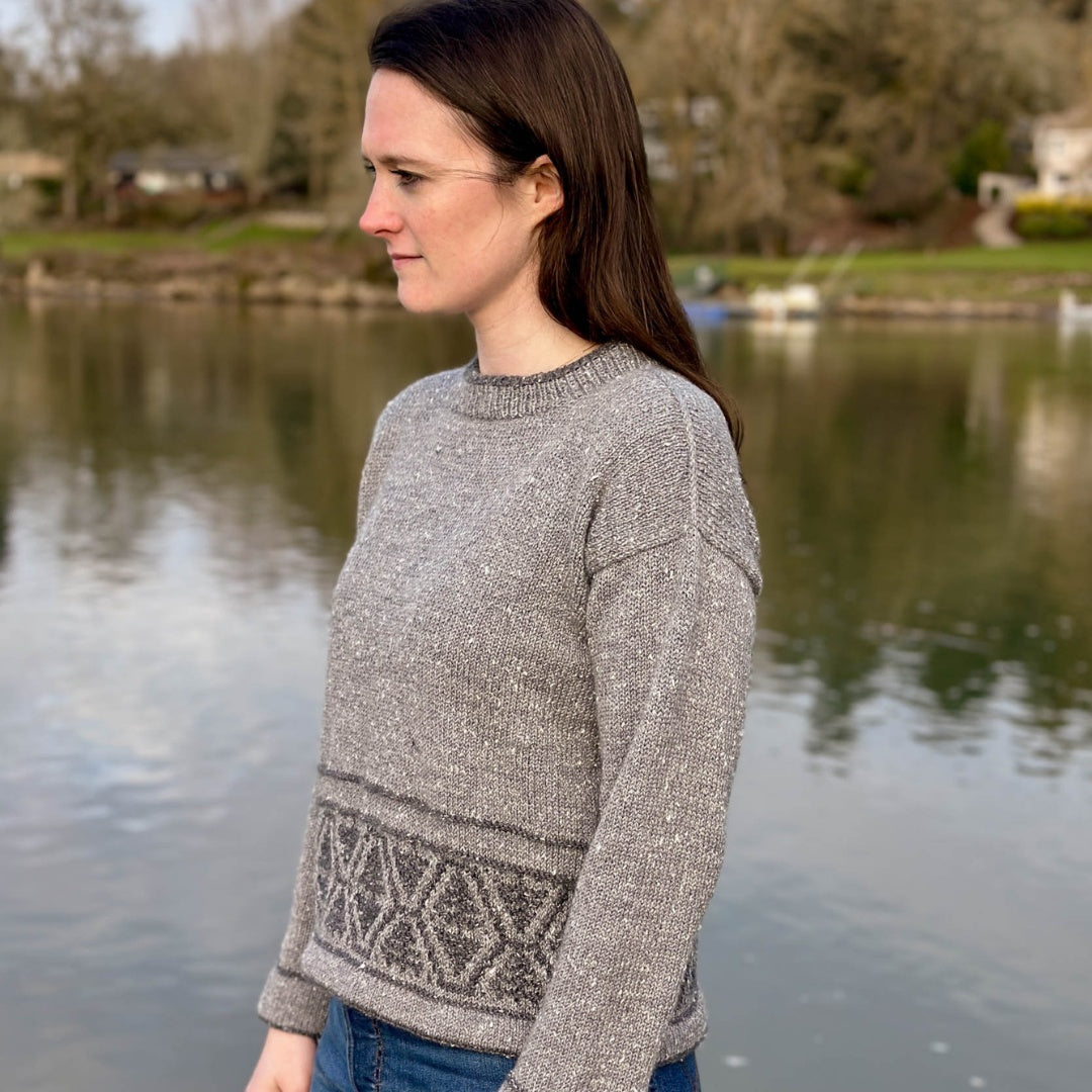 Inspired by the beautiful trails within the luscious green forests of the Pacific Northwest, the Forest Park Pullover is a fun sweater to knit and wear. Crafted using DK-weight yarn, this top-down, seamless pullover allows you to try it on as you go and adjust the length to your perfect fit. The mosaic colorwork, which uses only one color of yarn per row, is beautifully textured and adds a unique flair to the sweater. The result is a cozy, comfortable garment that can be dressed up or down, making it versatile for any occasion.