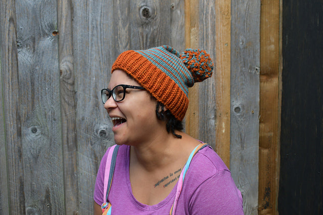 This hat by Fyberspates founder Jeni Hewlett using Tarma Aran is the perfect accessory for the cooler months.