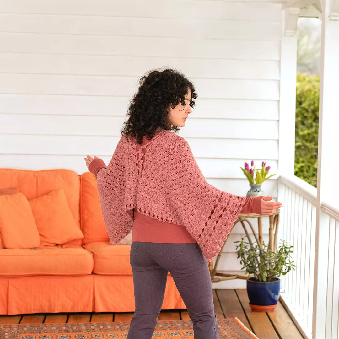 Sometimes the simplest ideas are the best. Did you know you could create a beautifully draping poncho with just two rectangular panels? Rebecca Dagmar’s Good Vibrations Throwover is a dreamy light layer for summer with the most straightforward construction. It’s decidedly modern but with a distinct 1970s flavor, and the pretty shell stitch pattern - inspired by soundwaves - is highlighted with eyelet details at the sleeve edges.