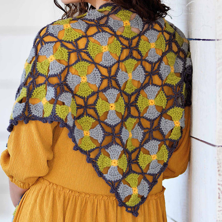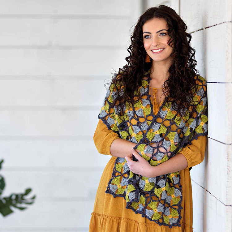 A beautiful motif crochet wrap from West Yorkshire Spinners using it's ColourLab DK yarn and an absolutely perfect project for taking on your travels. More details