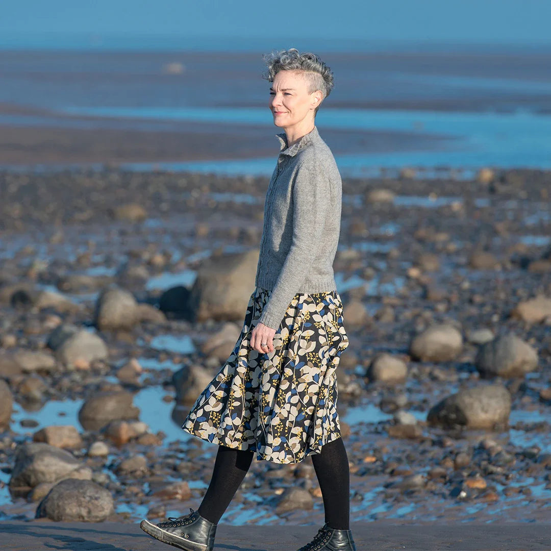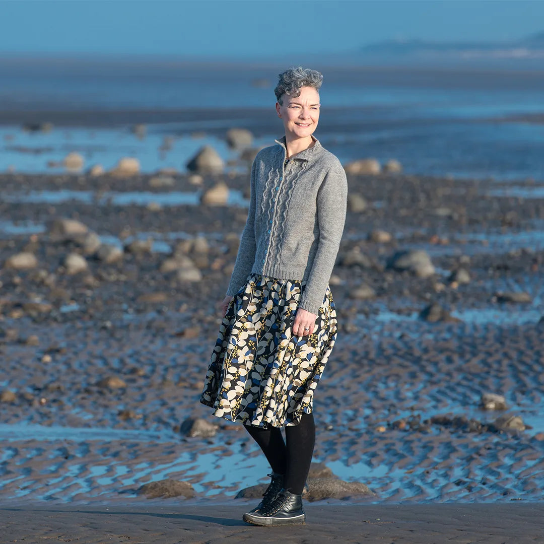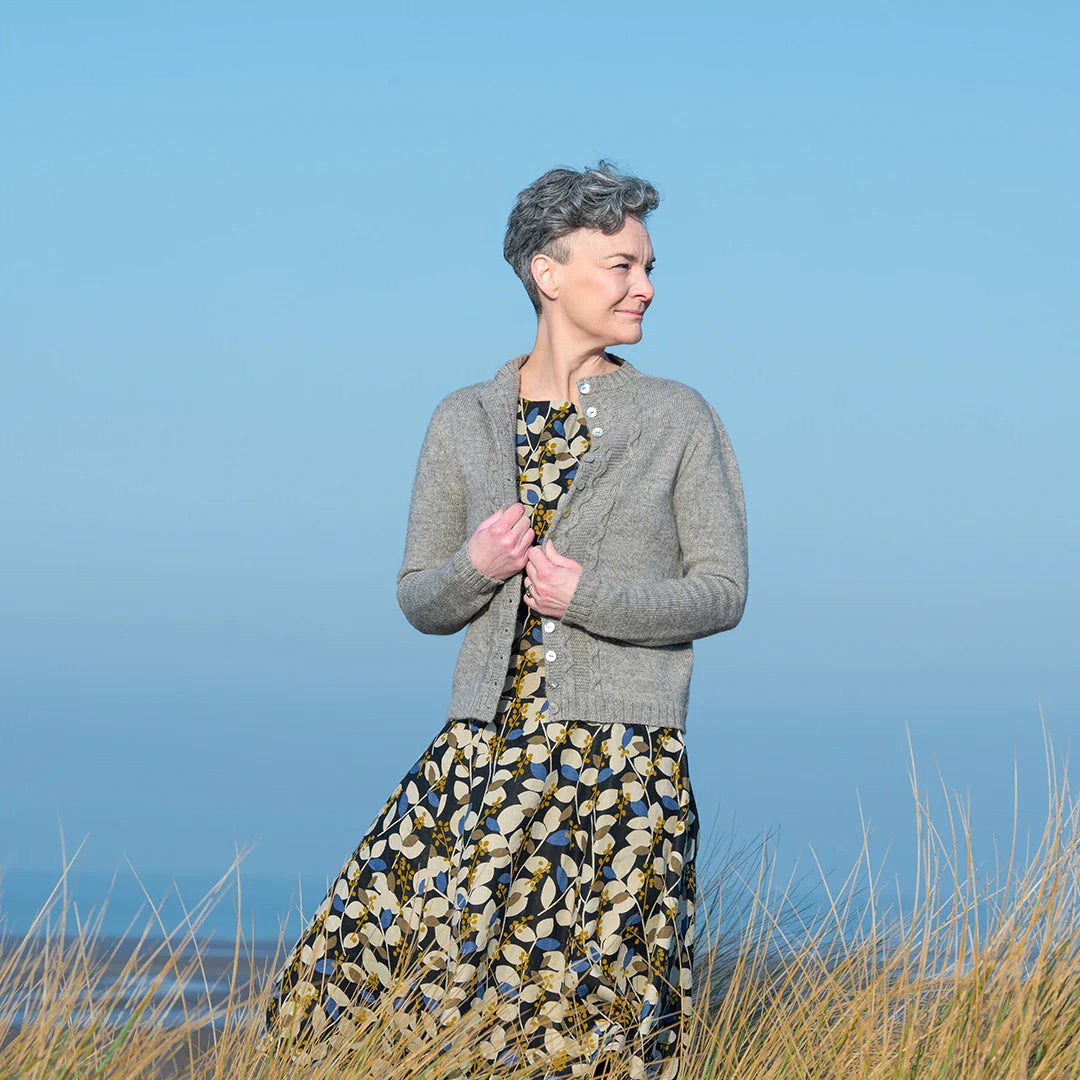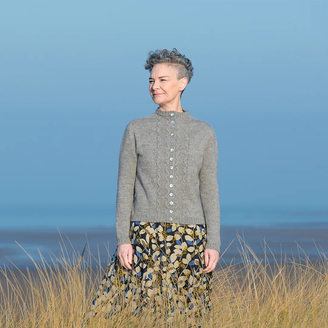 Inspired by rugged cliffs, crashing sea, rough hands and hard work, this cardigan has a classic heritage quality that is markedly feminine, yet rugged. Jetty Cardigan is knitted top down and features gorgeous cable detailing down the front and stockinette stitch for the main body.