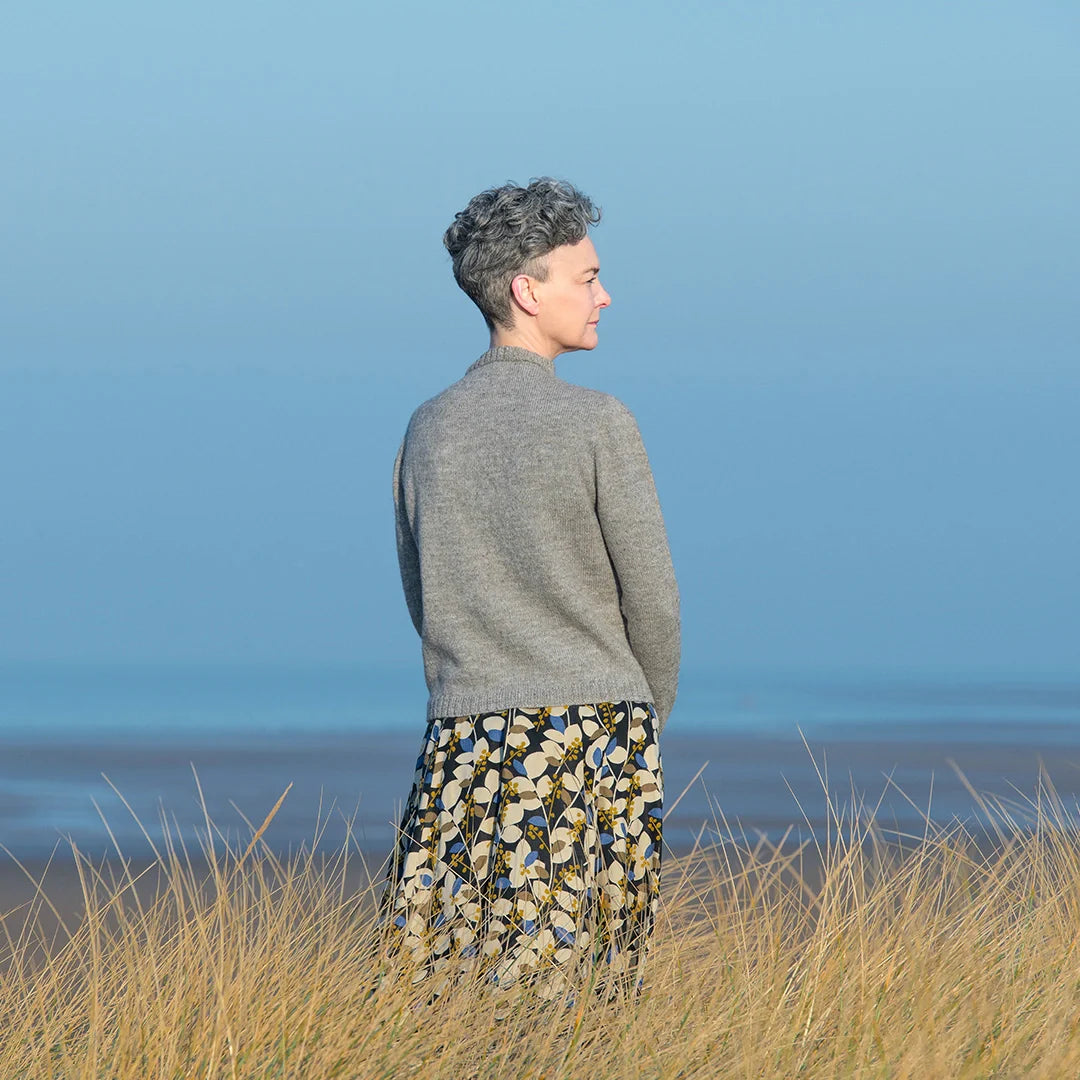 Cumbria Fingering was chosen for this project due to its diligent ‘wooliness’ and durability. Made from a lustrous blend of Masham wool, Merino and mohair, this is the perfect project for those looking for something sophisticated and timeless to add to their handmade wardrobe.