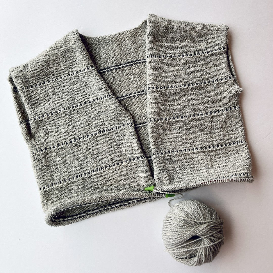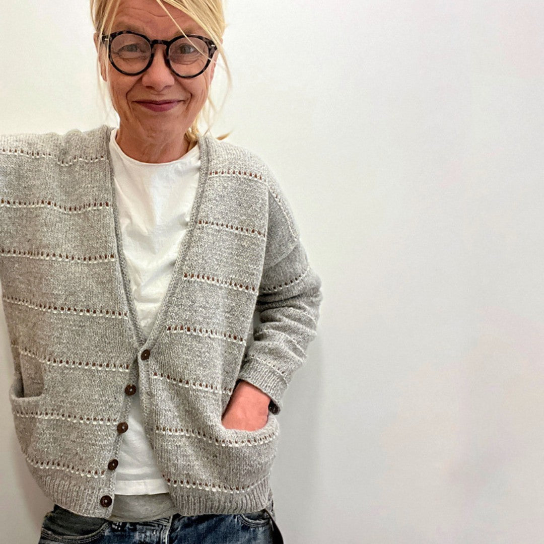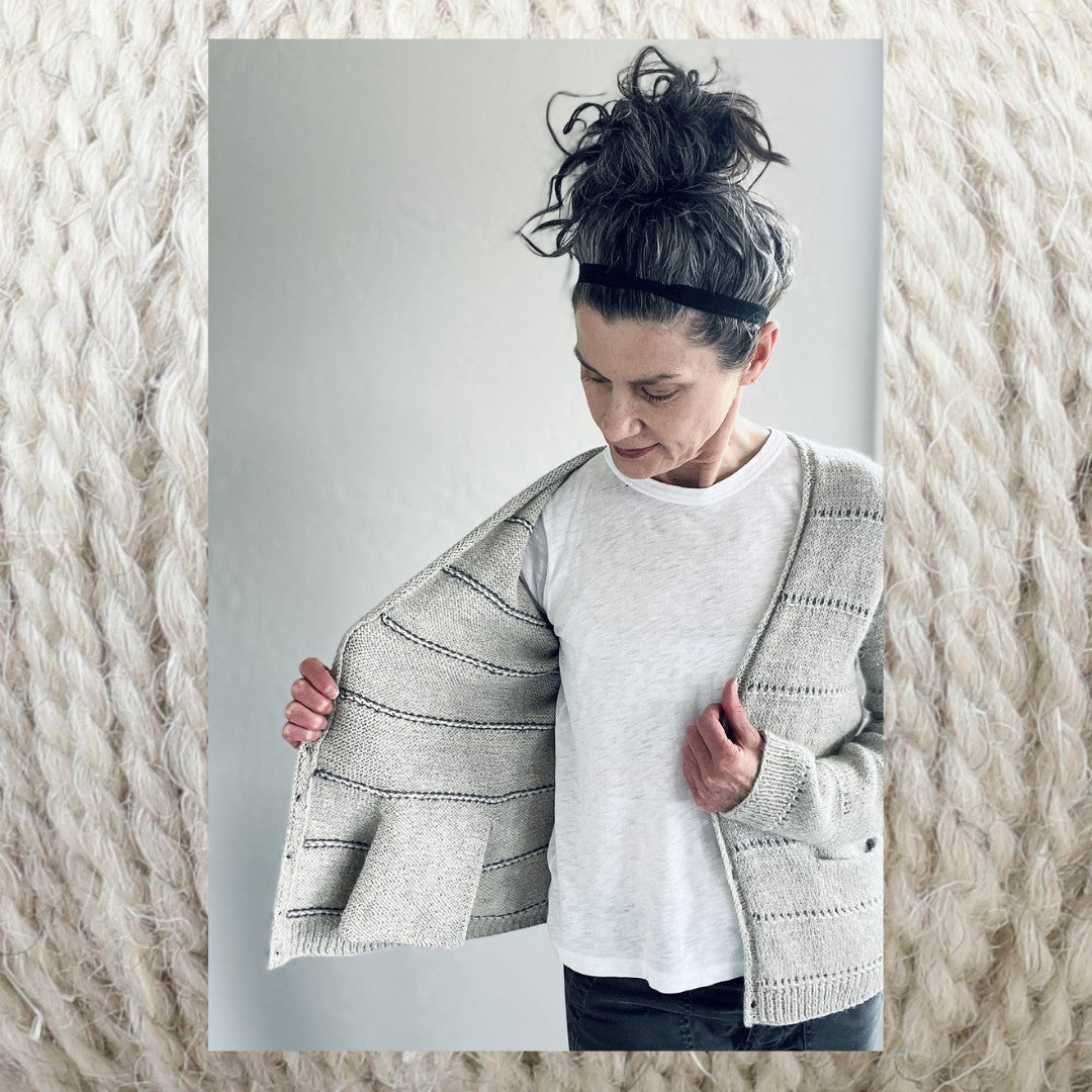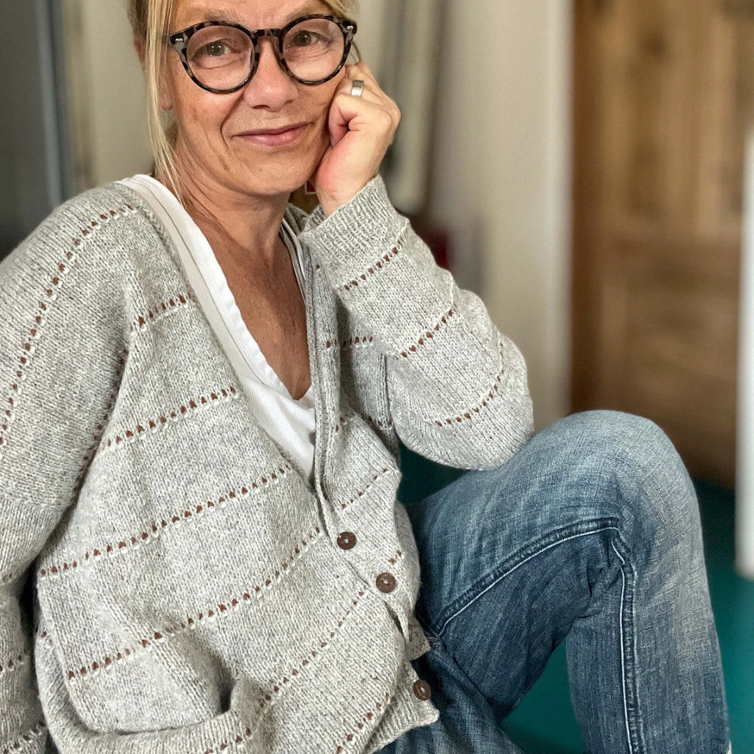 The Nonno cardigan brings together the timeless style of designer Isabell Kraemer and the comforting quality of The Fibre Co.'s &Make DK yarn. Inspired by the designer’s grandfather—whose cardigans were the stuff of family legend—the Nonno cardigan blends nostalgia with modern construction. This seamless top-down design features a fun and engaging slip stitch stripe pattern, perfect for adding a pop of texture or playing with color in your stash. Thoughtful details like short row shoulder shaping, built-in seamless pockets, and top-down sleeves make this a rewarding knit for experienced knitters. Designed with comfort and everyday wearability in mind, Nonno is a versatile layering piece you'll reach for again and again.