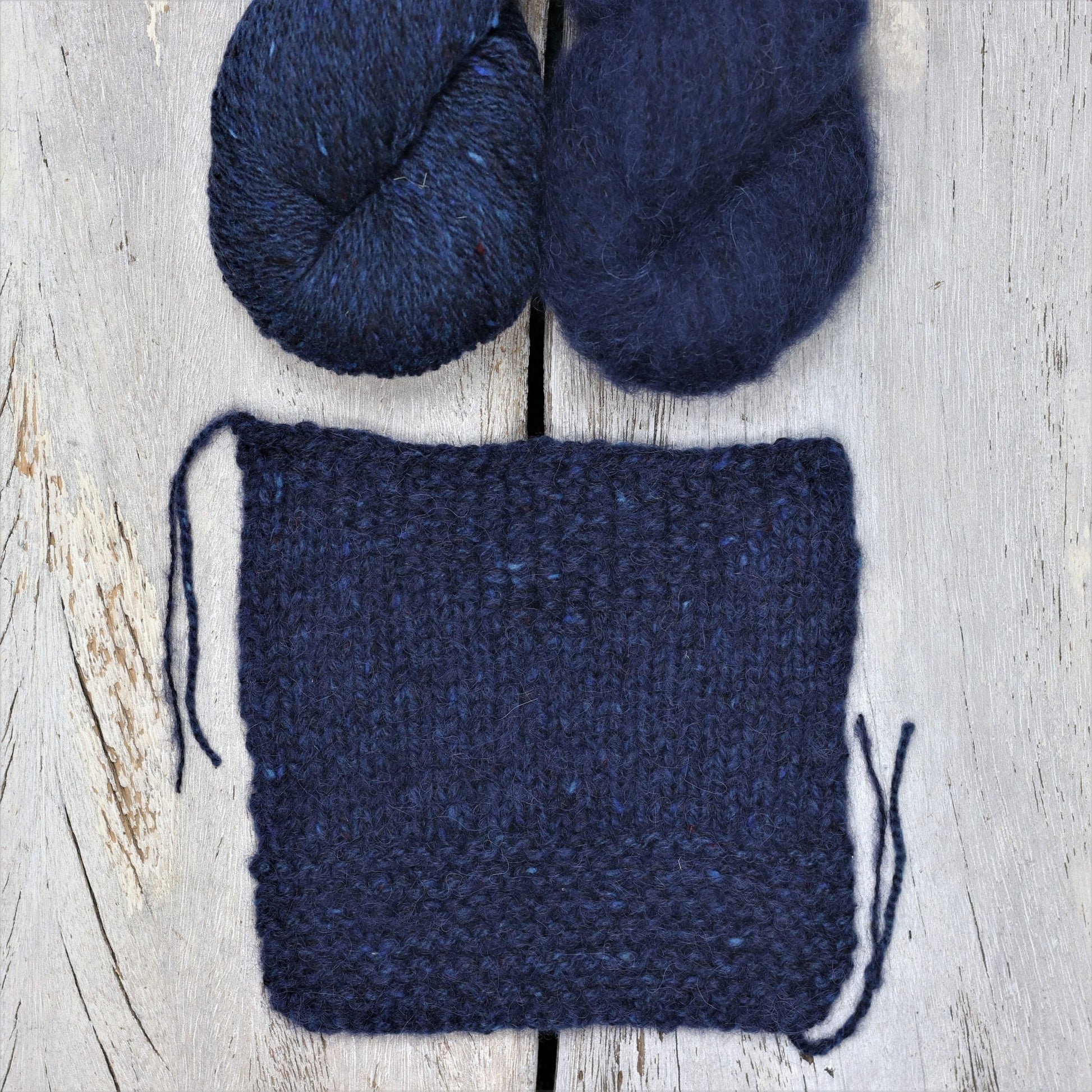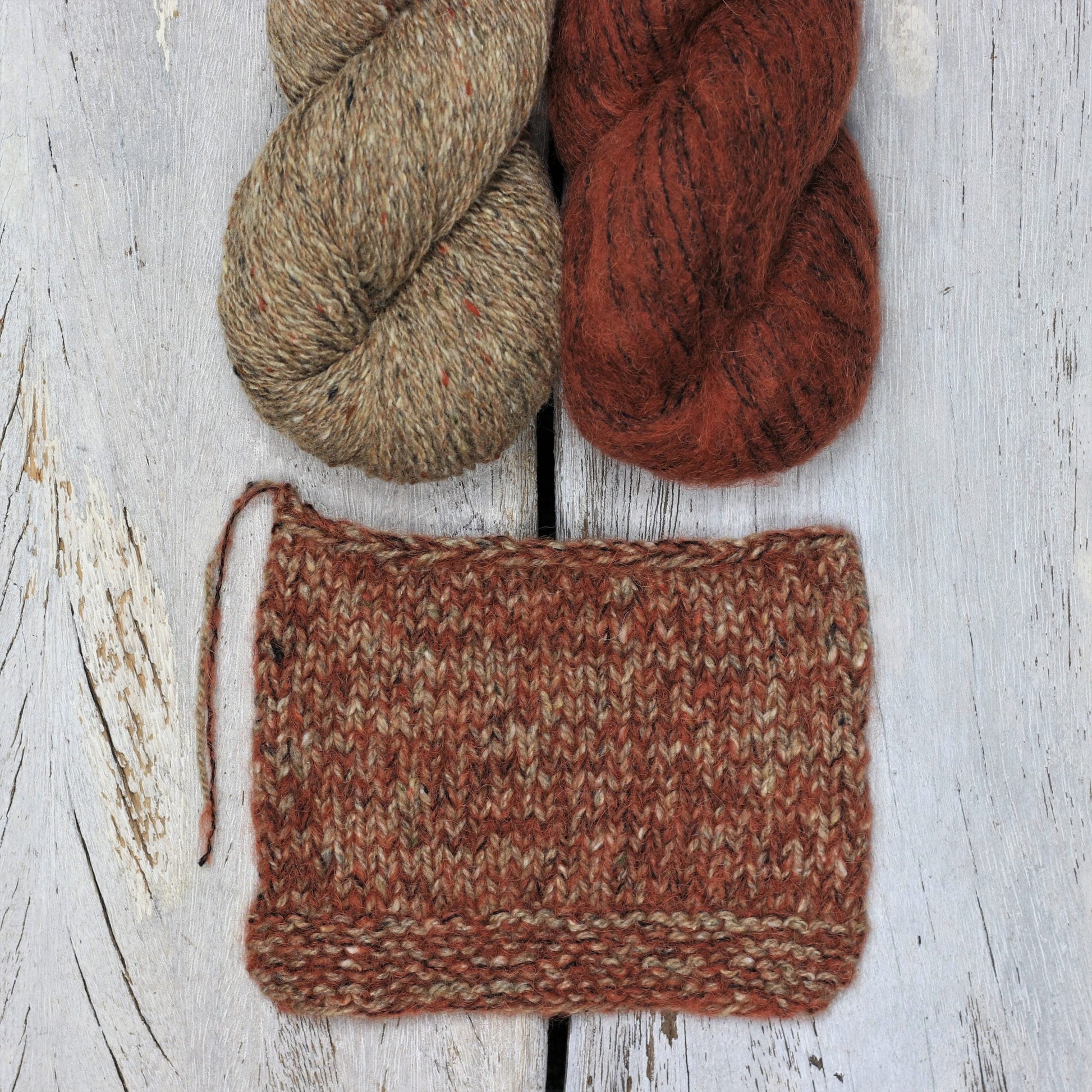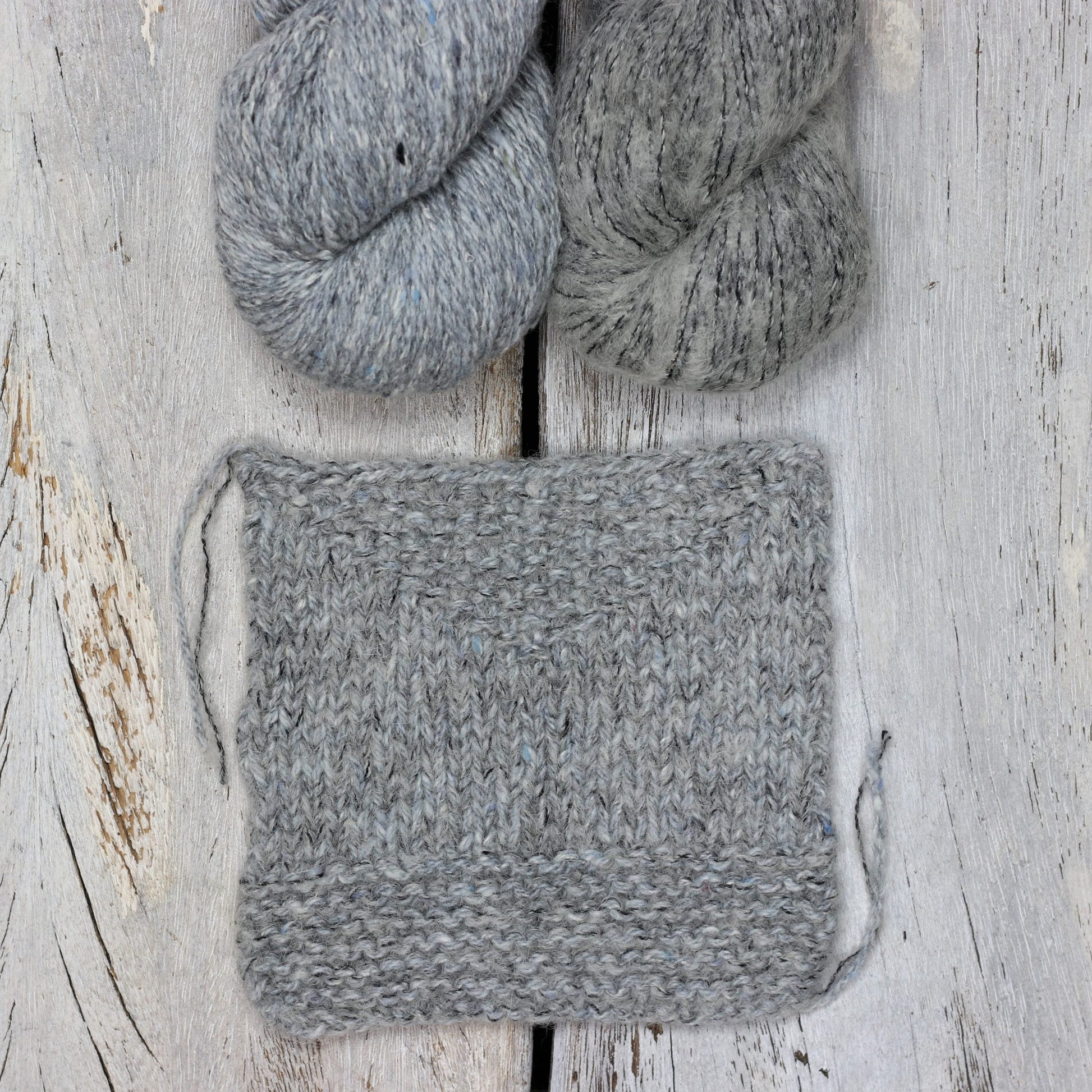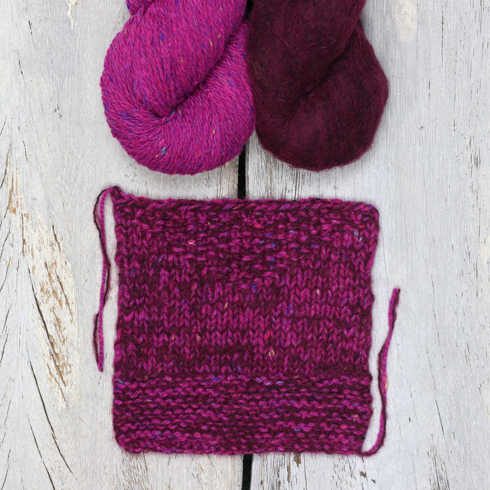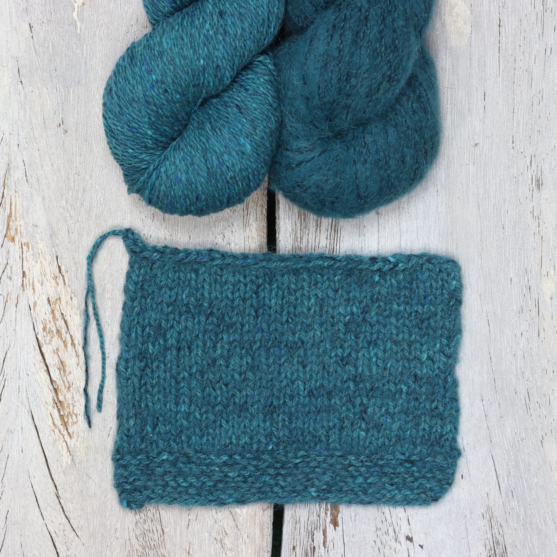 One Sweater V-neck is knit using two different yarns held together. This kit uses the combination of Cirro and Arranmore Light held double. The warmth and volume from Arranmore Light knit with the fuzzy softness of Cirro merge into a wonderfully cozy, heathered fabric.