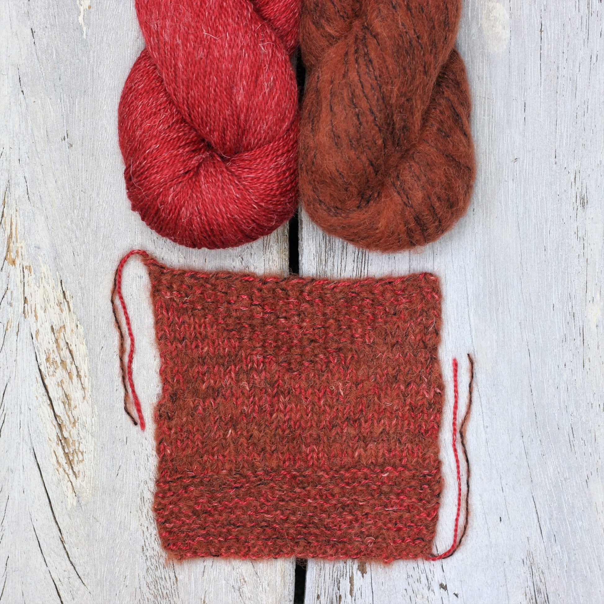 The Fibre Co. Meadow (40% Merino wool, 25% baby llama, 20% silk, 15% linen, 498 m (545 yd) per 100 g hank) in Red Clover – 1 [1: 1: 1: 2: 2: 2: 2: 2: 3: 3: 3: 3: 3: 3] hanks. For longer length – [-: -: -: -: -: 2: 2: 2: 3: 3: 3: 3: 4: 4] hanks.