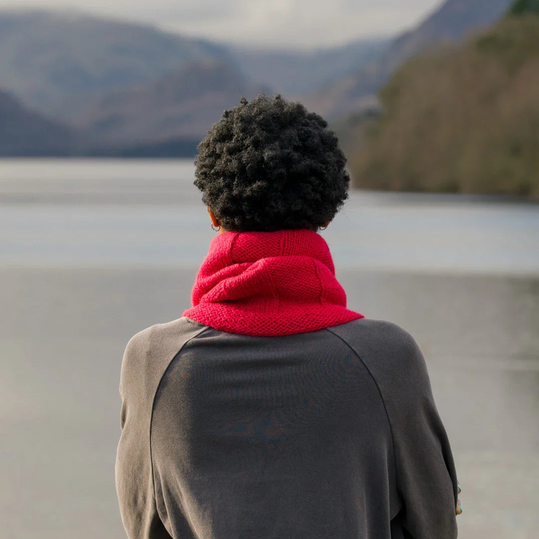 Designed and knitted in &Make Aran, a soft 2-ply yarn blend of Highland wool and alpaca, this cowl is a warm breathable project made in great quality fibres.