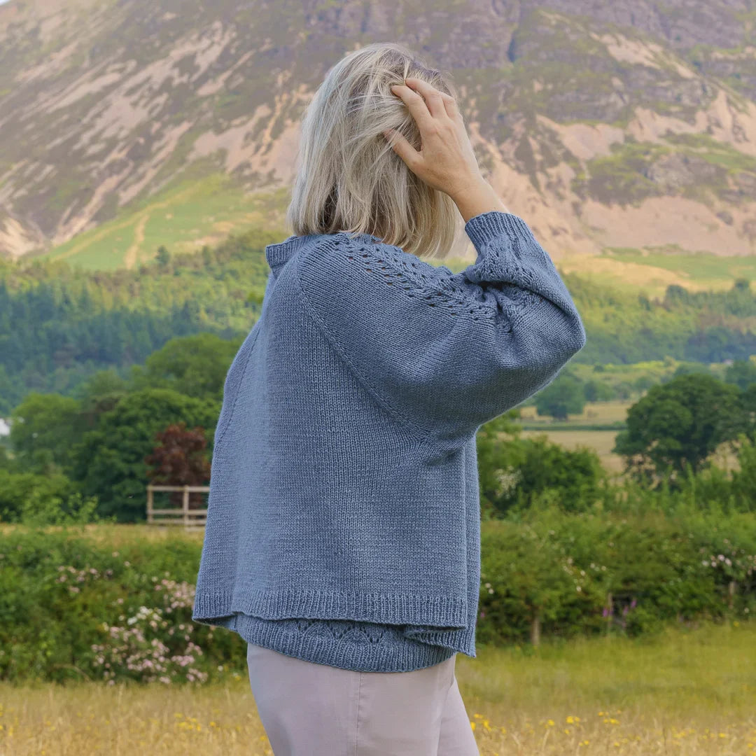 These pieces are knitted using The Fibre Co.’s Luma, a yarn blend that combines Merino wool, organic cotton, linen, and silk. The choice of yarn ensures that the twin set is not only soft and comfortable but also lightweight and suitable for warmer seasons, aligning with the summer-inspired design. Choose the Tranquil Twin Set for a knitting project that balances detailed design with wearable practicality.