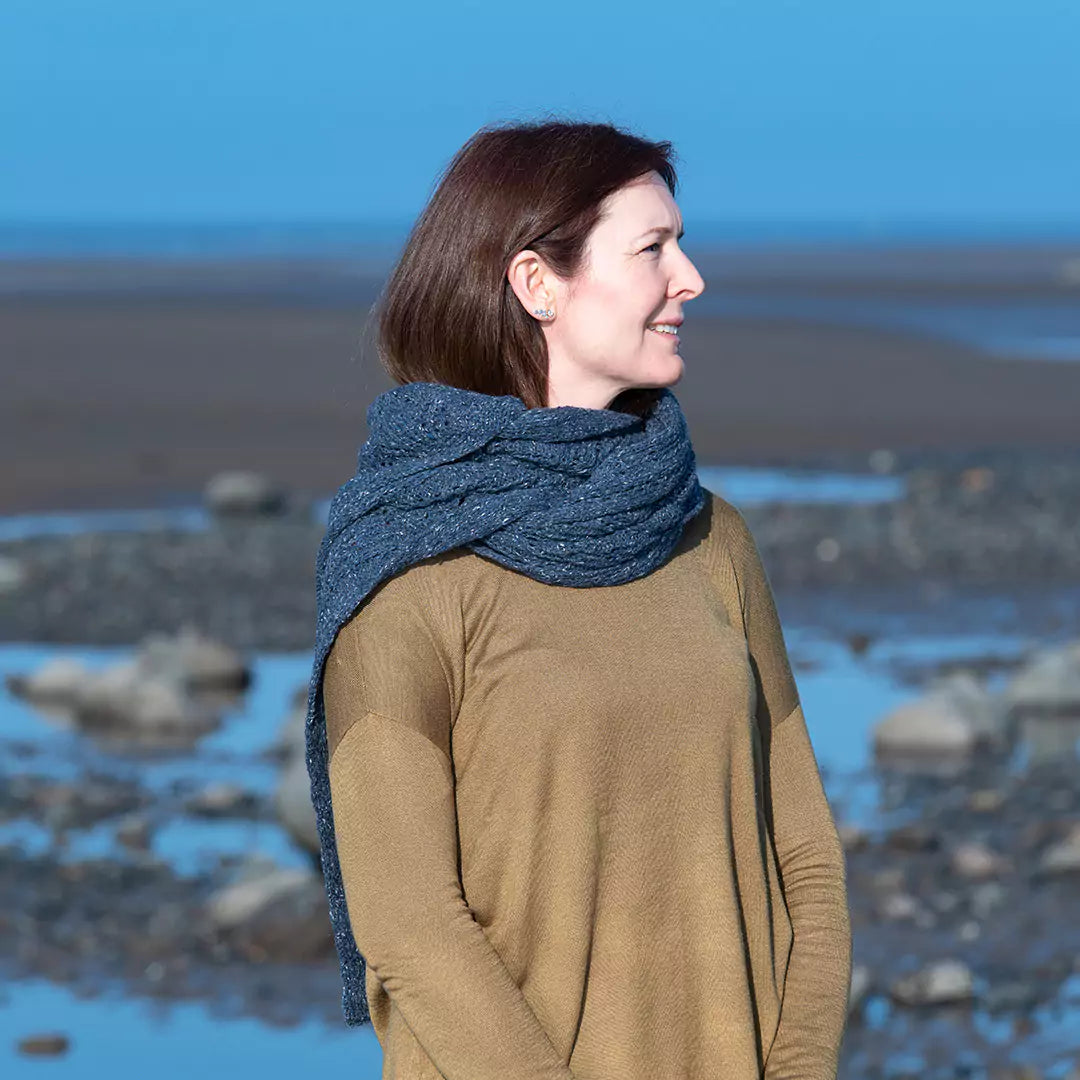 Knitted in the tweedy blend of fine Merino wool, cashmere, and silk of Arranmore Light makes this a truly authentic knitting project. Multiple shades of wool nepps are used in the Donegal tweed yarn to give it its unique rustic-flecked appearance.