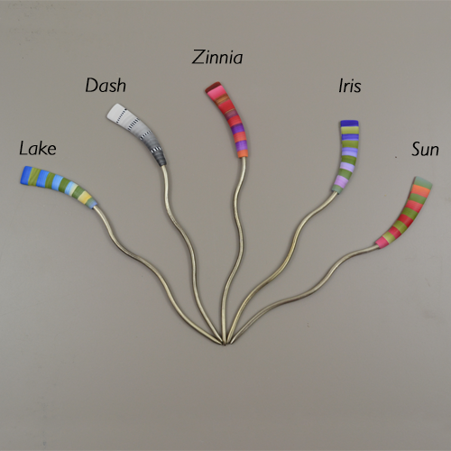 Bonnie brings the exuberant art of polymer clay to the world of fibre. Her shawl pins are designed to use with all your knit, woven & felted wearables. These colour sticks look great in a lapel Have fun rearranging your clothes and putting a zing in your wardrobe.