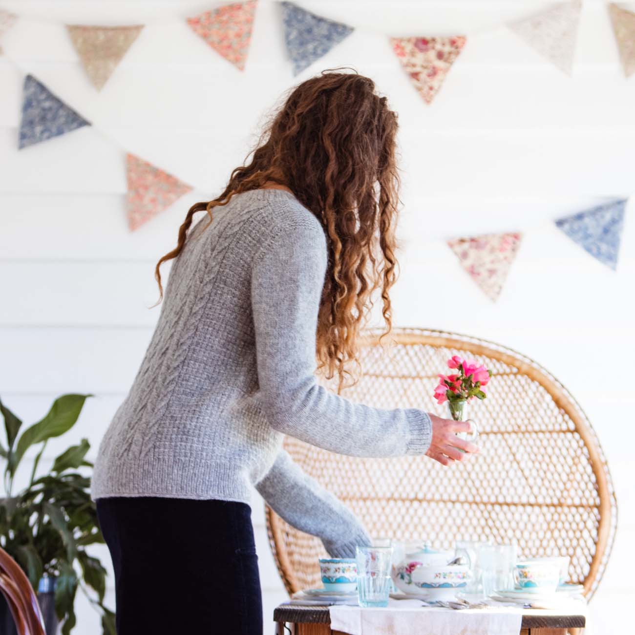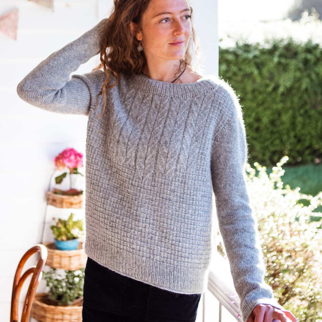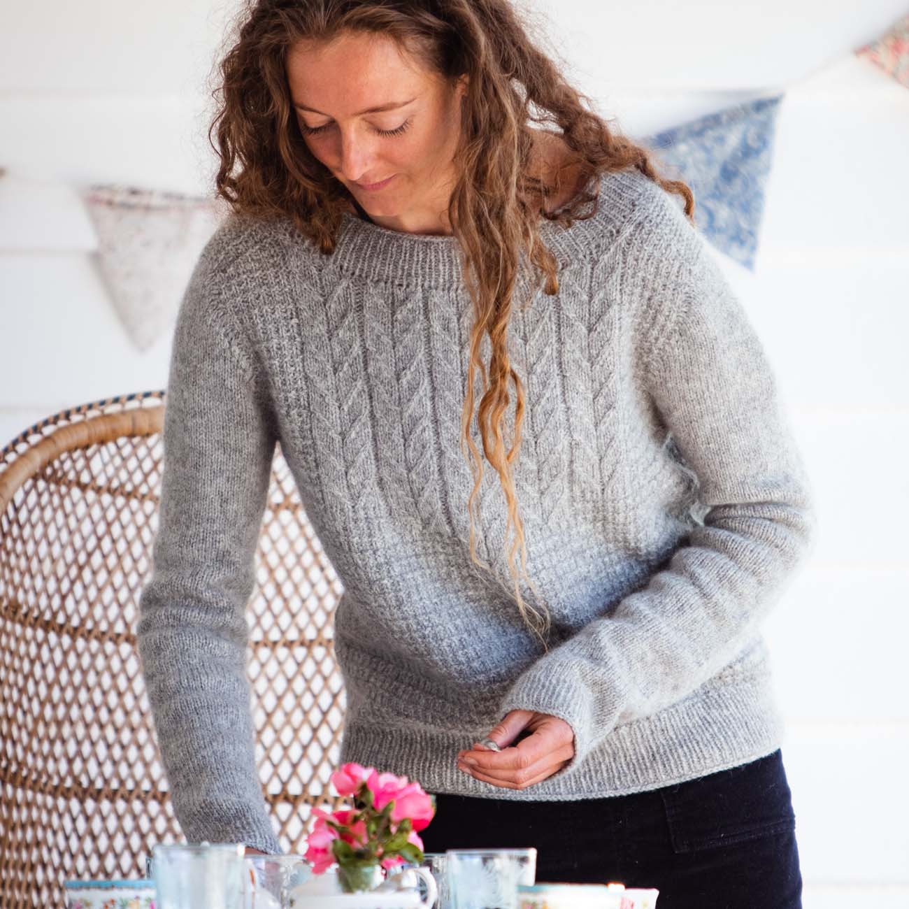 Brandelhow is a modern take on a fisherman’s sweater featuring panels of mock cables and a textural broken rib. Knitted top down in Lore, it uses short rows to cleverly shape the shoulders, neckline and sleeve caps to ensure great fit. Buy a Brandelhow kit for yourself or a knitting friend!