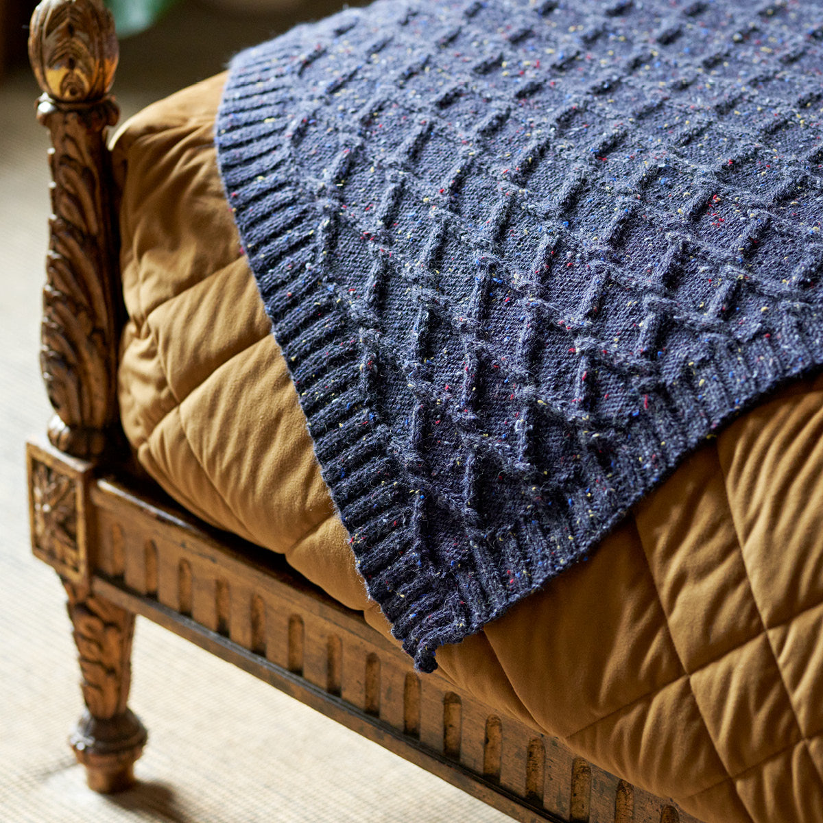 "ColourLab Aran has so much to offer, 100% British wool that's full of bounce and creates a beautiful fabric, perfect for comfortable garments and cosy homewares. With a classic colour palette, including timeless tweeds that introduce a subtle contrast and bring the simplest of designs to life. I hope you enjoy making!"" - Jenny Watson