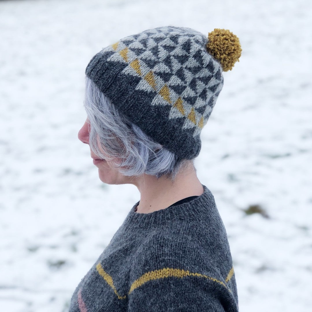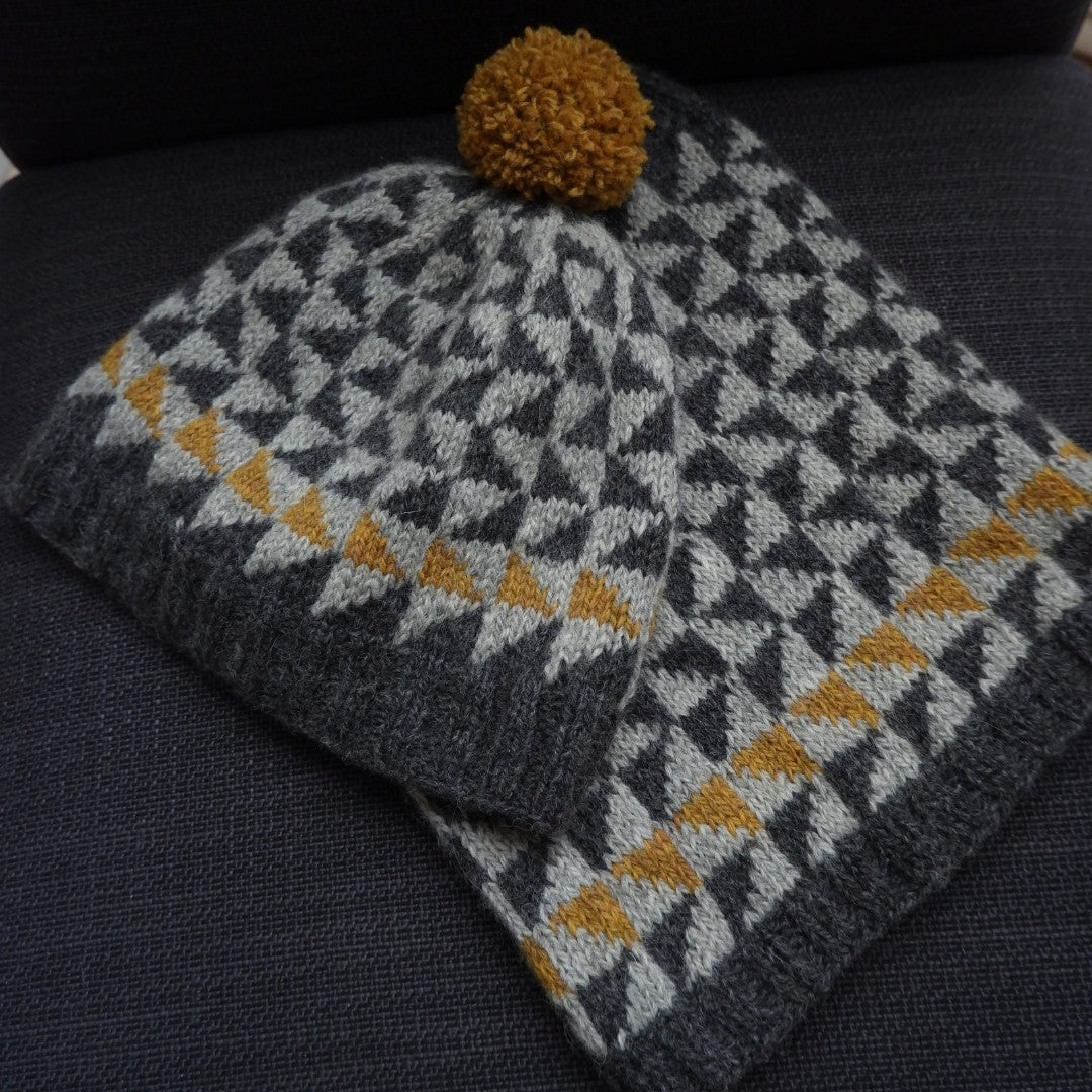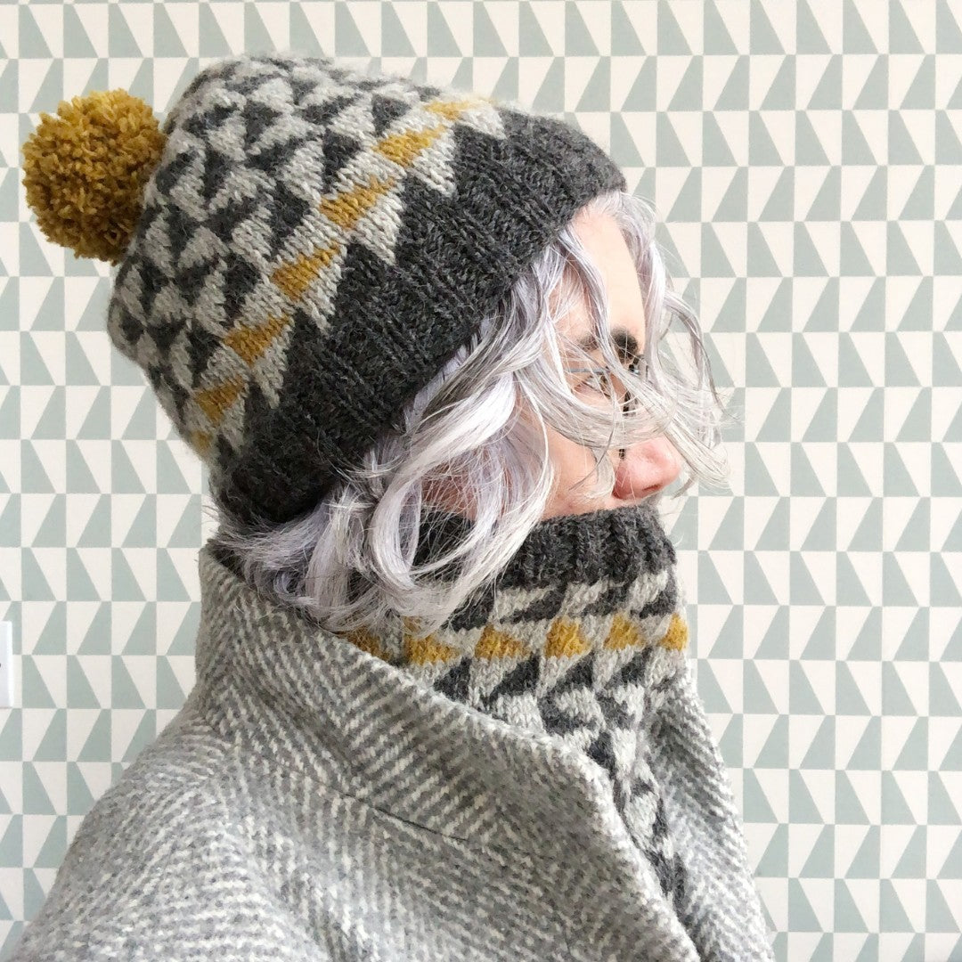 Designed by Belén Fernández, Llariega is a stunning hat and cowl set that celebrates the timeless beauty of stranded colorwork for knitters of every skill level. Worked seamlessly, the bold geometric motif is easy to memorize, making it an ideal first project for those new to stranded knitting. The pattern includes instructions for a bottom-up hat in two sizes, as well as a coordinating cowl in one size, perfect for everyday wear through the colder months. The deceptively simple pattern feels both modern and classic—offering endless versatility and styling options for your handmade wardrobe.
