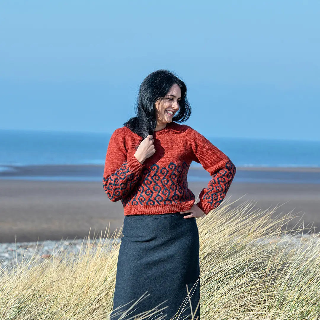 Cumbria is the perfect yarn for this colorwork sweater because of how the fibre compacts and keeps each stitch close to the other, giving the idea of a perfect drawing on knitwear.