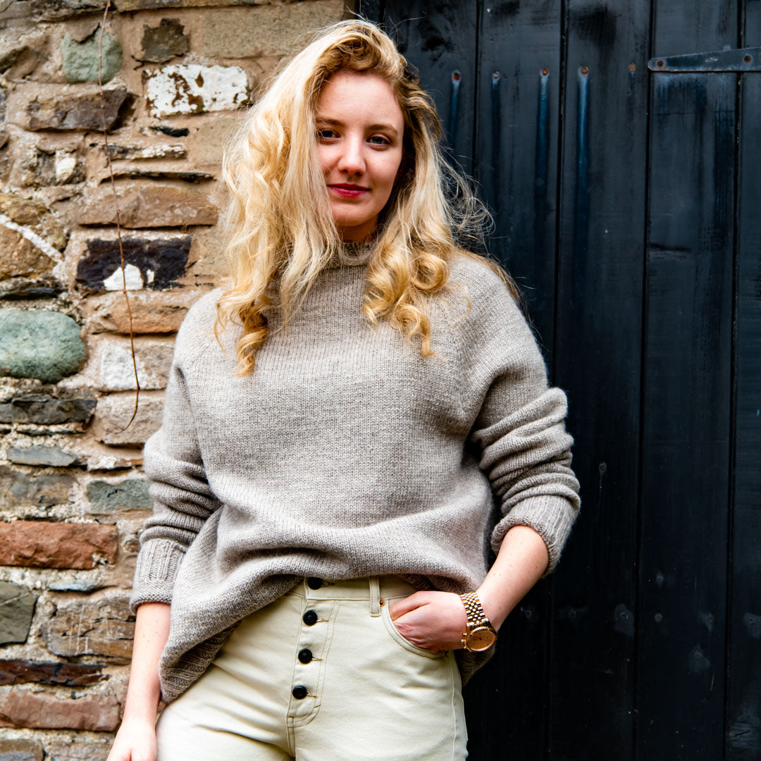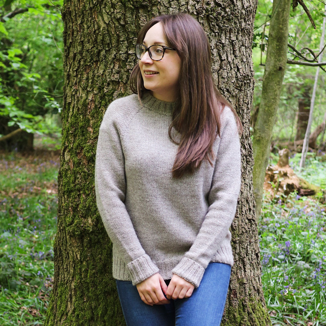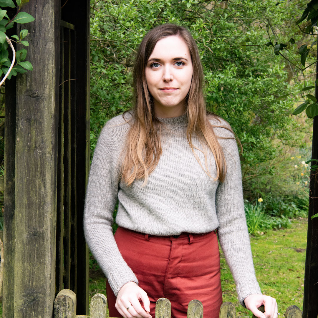 The Fibre Co. Cumbria (60% merino wool, 30% masham wool, 10% mohair; 218 m (238 yd) per 100 g hank) in Scafell Pike – 2 [2: 3: 3: 3: 4: 4: 5: 5: 6: 6: 6: 7: 8: 8] hanks. For longer length – [-: -: -: -: -: 4: 5: 5: 6: 7: 7: 8: 8: 9] hanks. Our yardage given includes enough to knit a 20 cm x 20 cm (8 x 8 in) tension swatch.