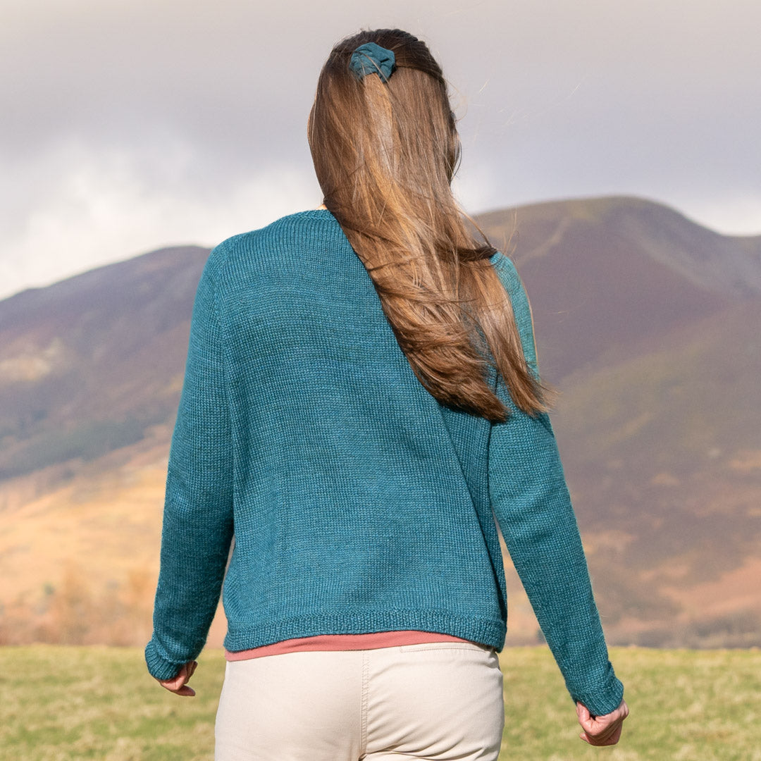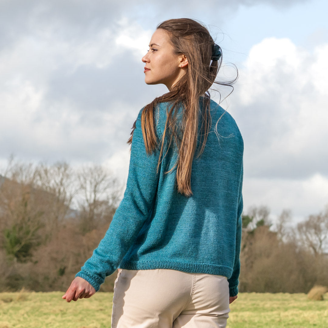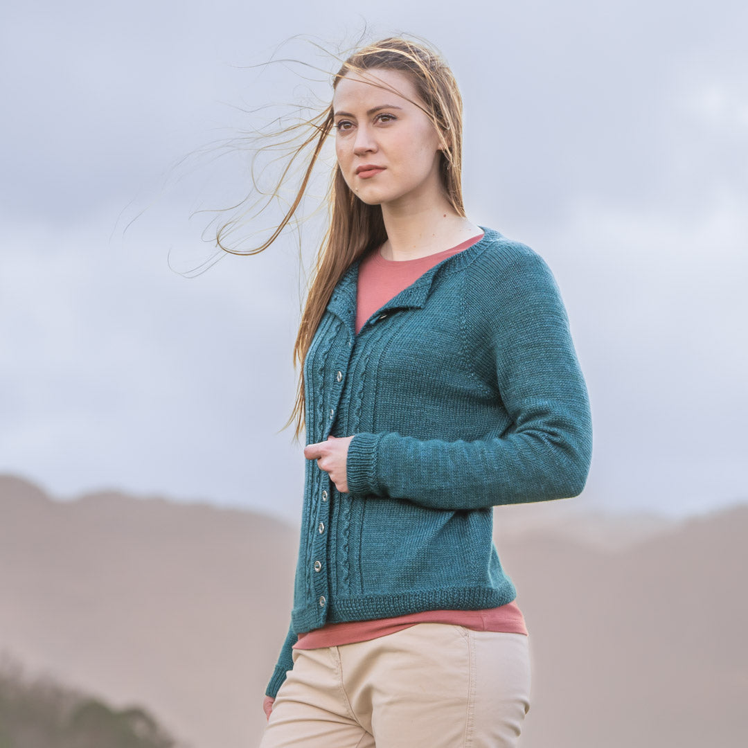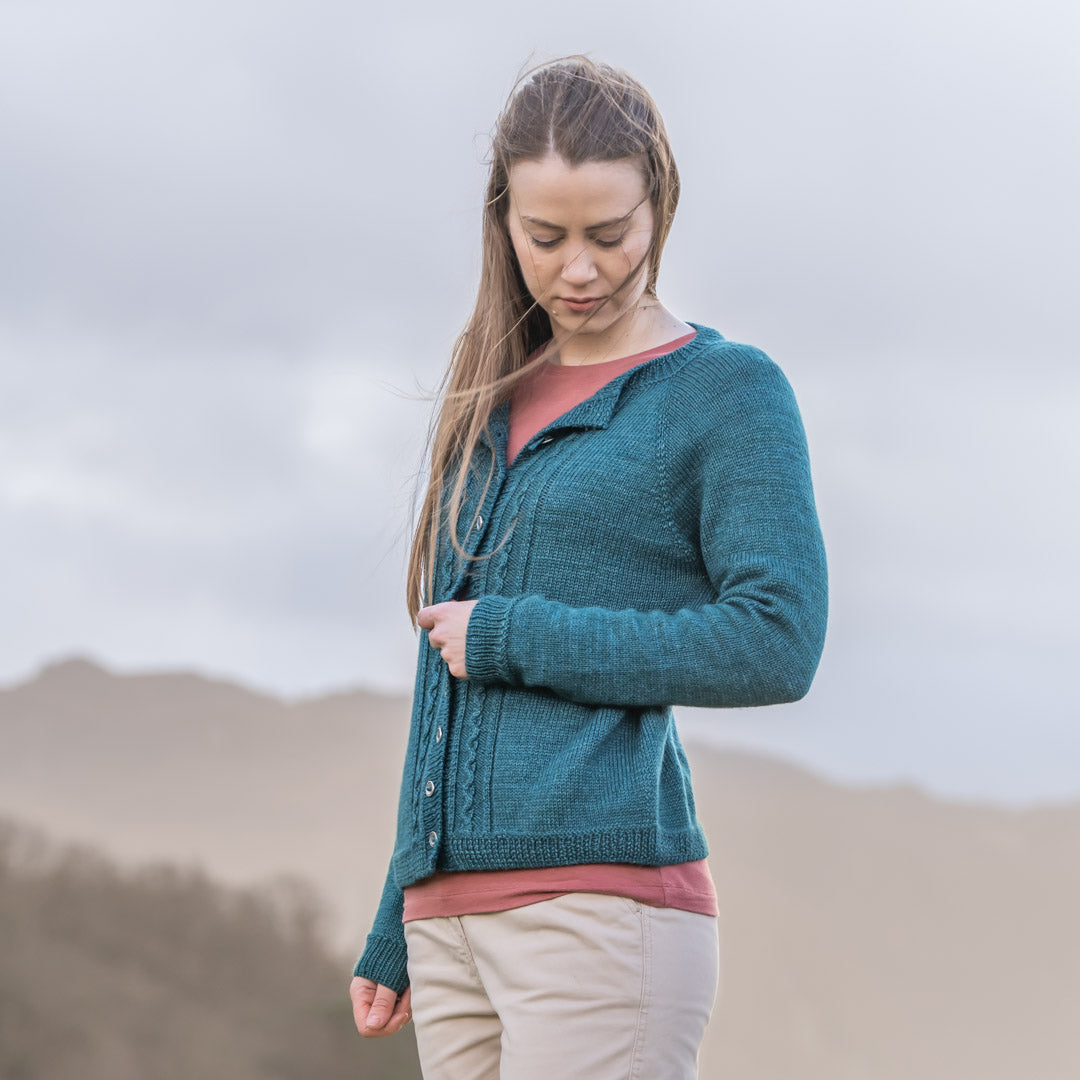 This cardigan is worked from the top down and incorporates short row shaping to lower the front neckline, while the yoke includes high raglan sleeves to ensure a great fit and ease of knitting. Optional short rows can be added to lengthen the back, enhancing comfort and wearability. Two charts are included for the cable pattern featured down the front of the cardigan, one for the left and one for the right side. For the collar and front bands, stitches are picked up along the neckline and front edges to provide stability and are worked in a 1×1 ribbing pattern. The Italian Tubular Bind-Off is recommended for a professional finish, although you can use your favourite bind-off method if preferred.