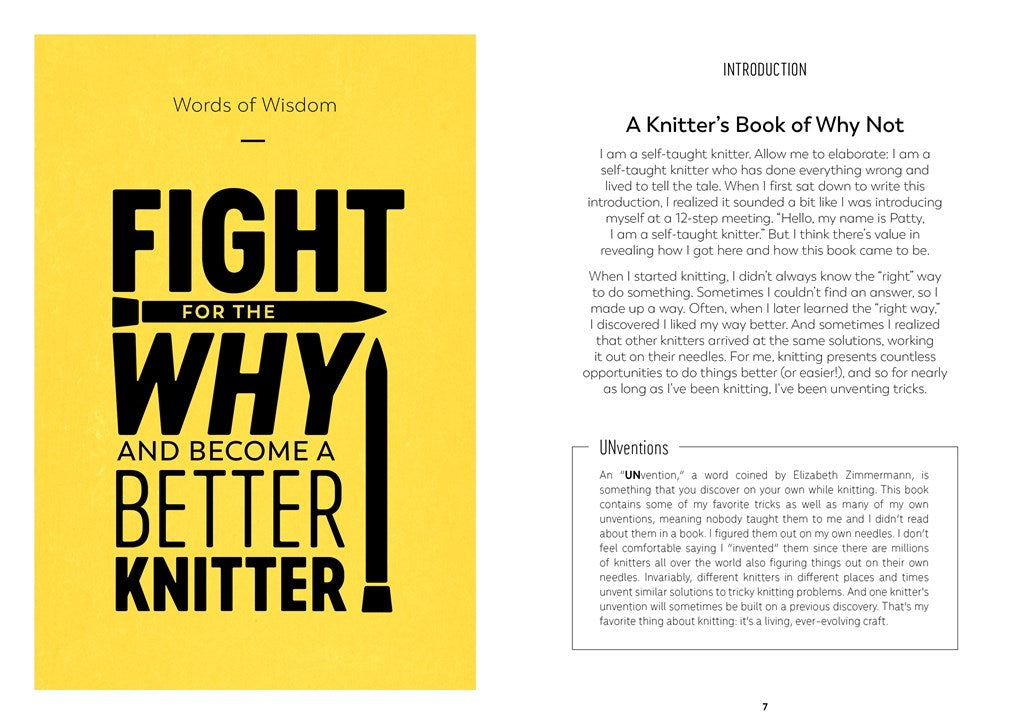 Featuring dozens of brand-new how-tos and the most popular tricks from author Patty Lyons’ beloved advice columns, this handy guide goes far beyond your typical knitting tips. Knitters of all levels will discover both why and how various techniques work and improve both the look of their knitting and their command of stitches. It’s sure to take any knitter’s skills up to the next level.