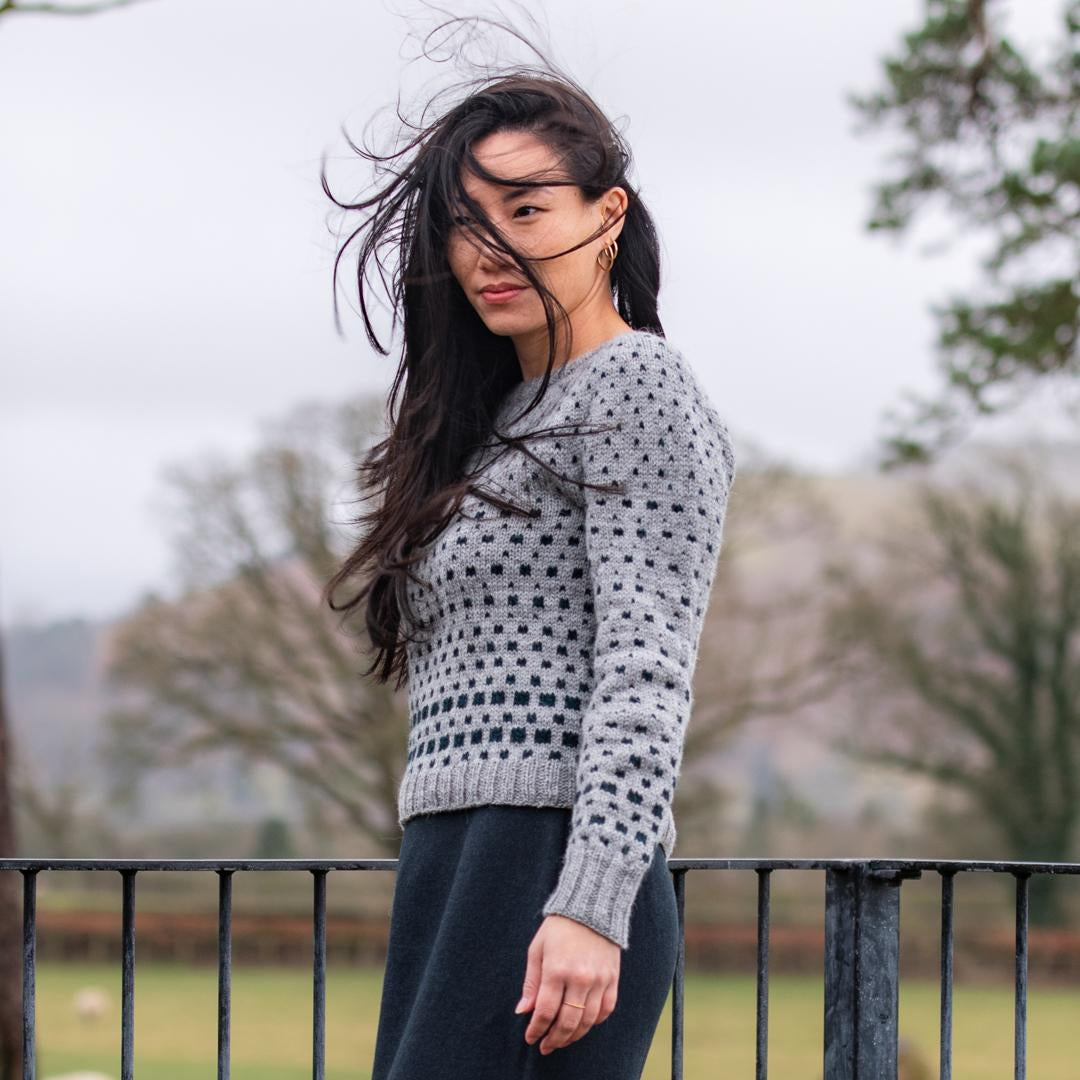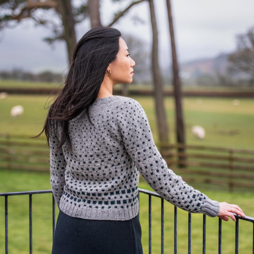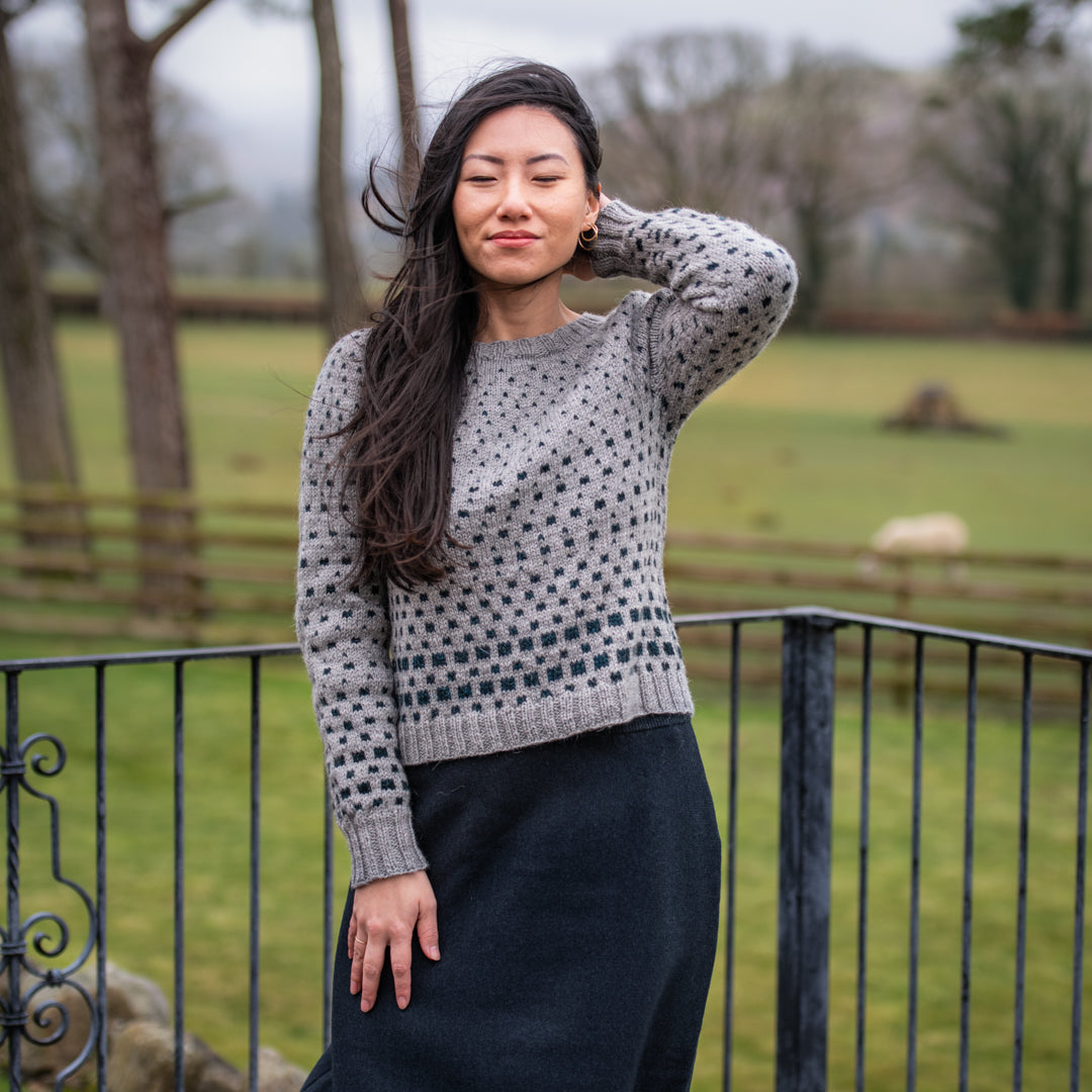 This sweater is knitted top-down, seamlessly in the round. The yoke is worked to the underarm where the work is divided and the sleeves are separated from the body. The body is worked and then the sleeves are picked up in the round and knitted top down. Short row shaping is incorporated at the shoulders right after the neckline.