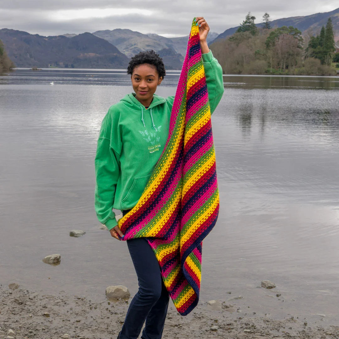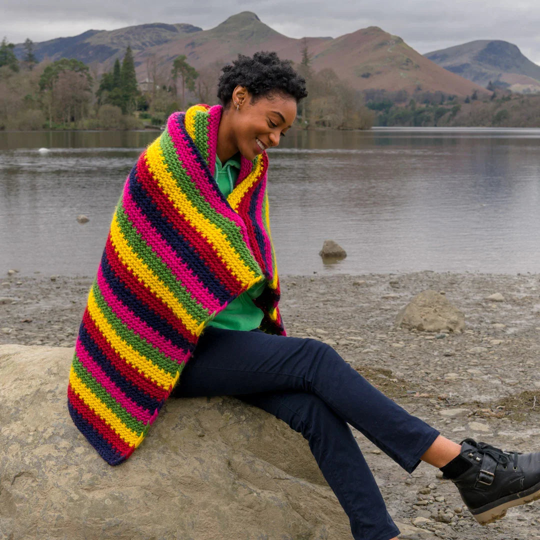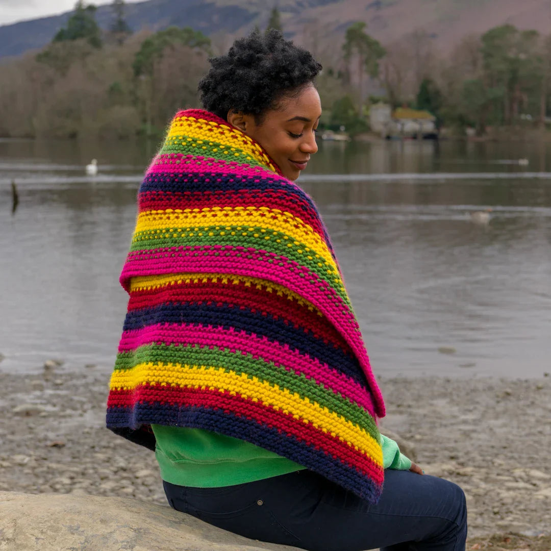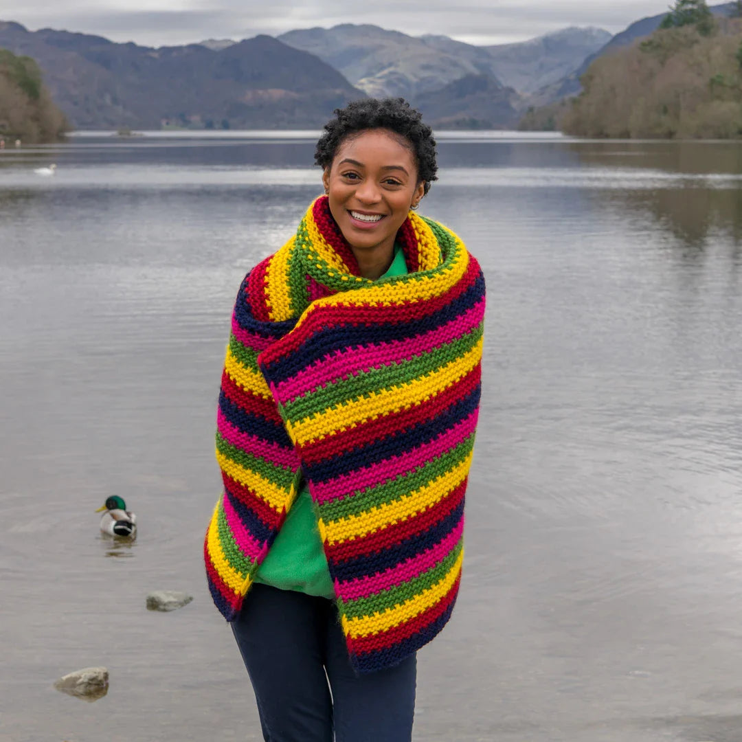 This striped throw is relaxing to knit, worked flat from one end to the other, and is perfect for those wanting something soft and cozy. More details