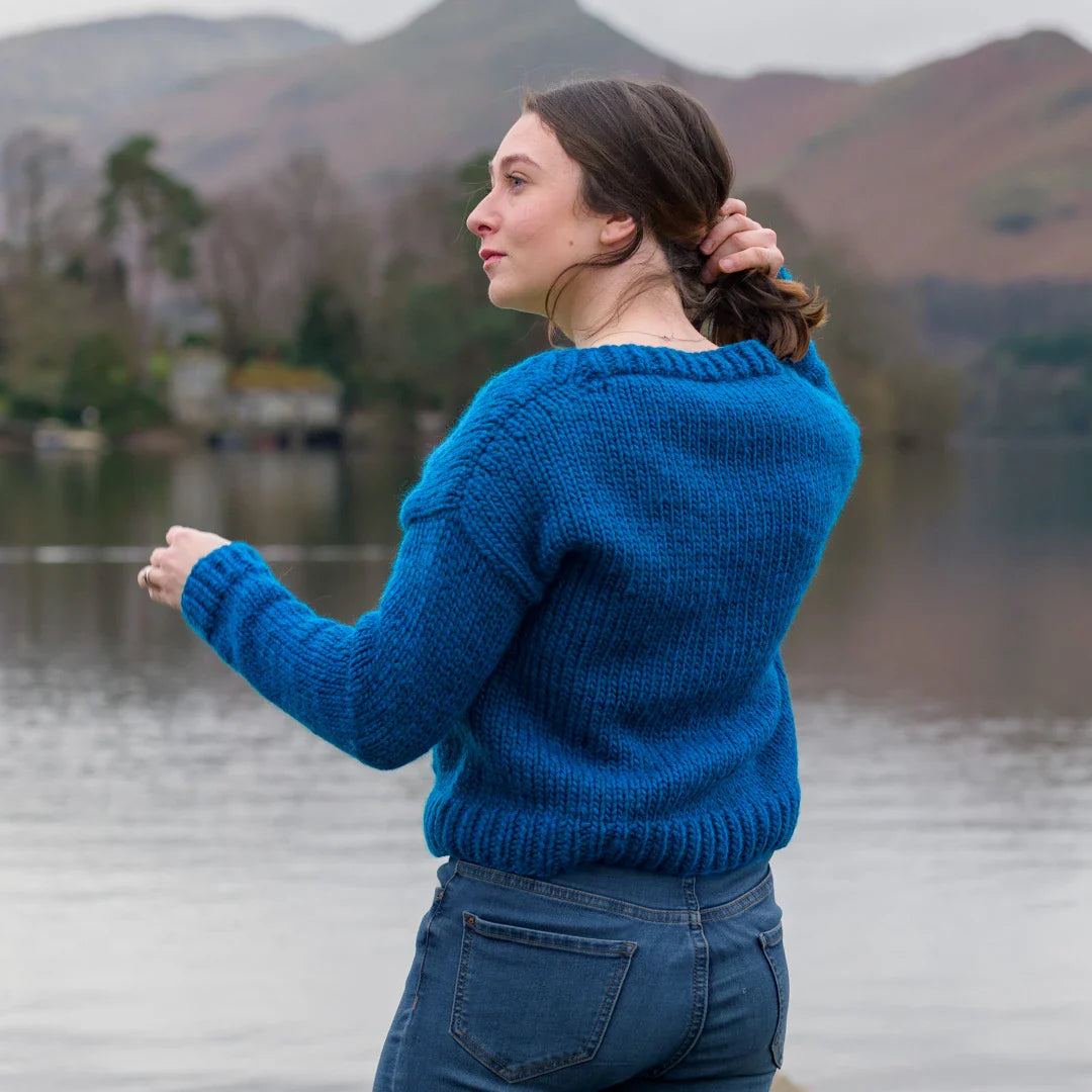 The Fibre Co. &Make Super Bulky (100% Highland wool, 80 m (87 yd) per 100 g ball) in shade Peacock Gang – 7 (7, 8, 9, 9) (10, 11, 11, 12) balls.