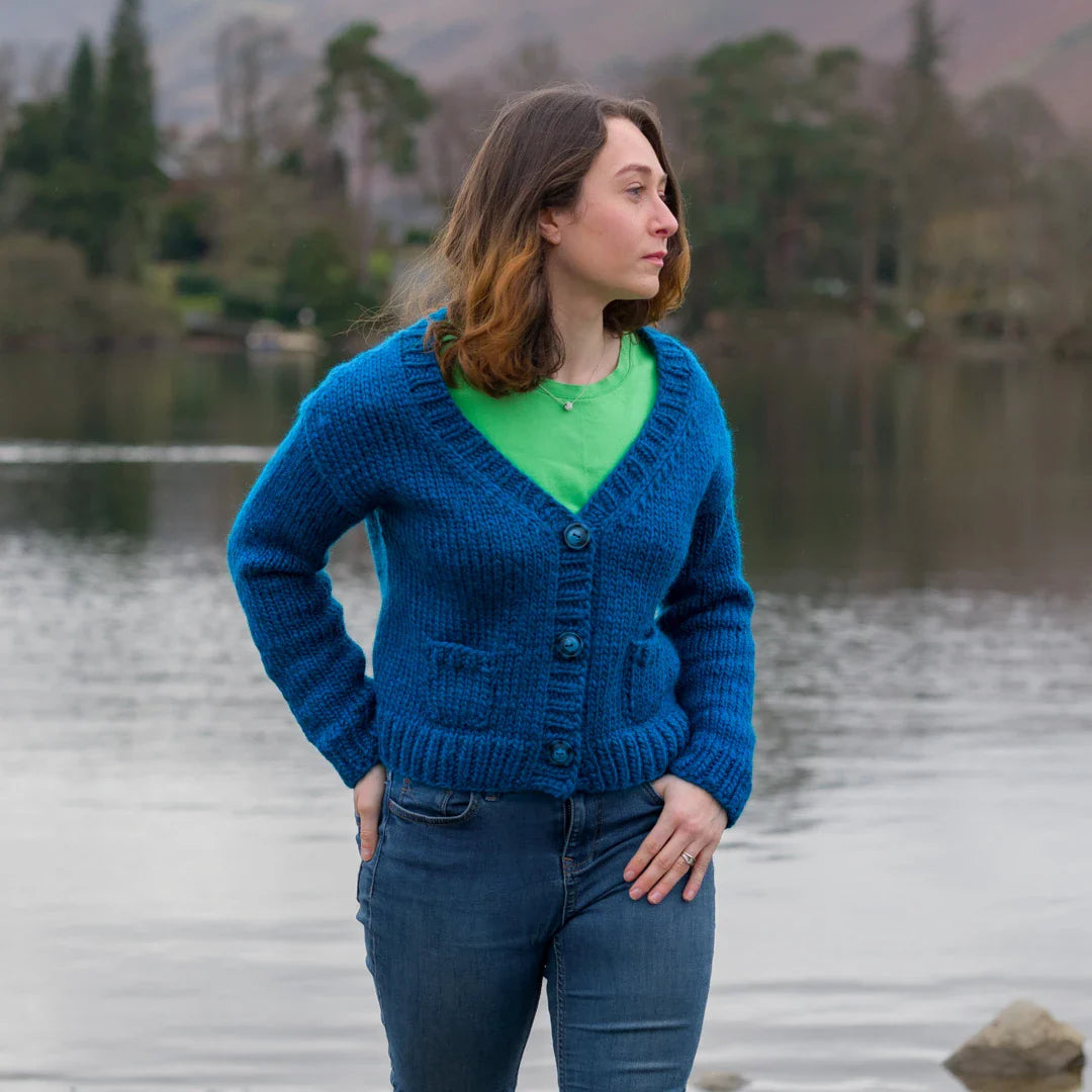 This super versatile drop-shoulder cardigan features chunky ribbed borders, two pockets on the front and an all-over stockinette stitch. Knitting the Rewind Cardy offers the chance to learn techniques like adding button bands, pockets and buttonholes in a format made for beginners. Like with all &Make designs, the knitter is...