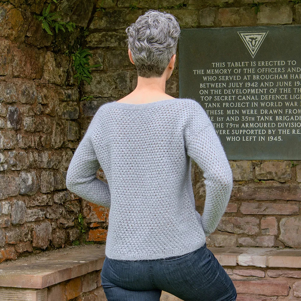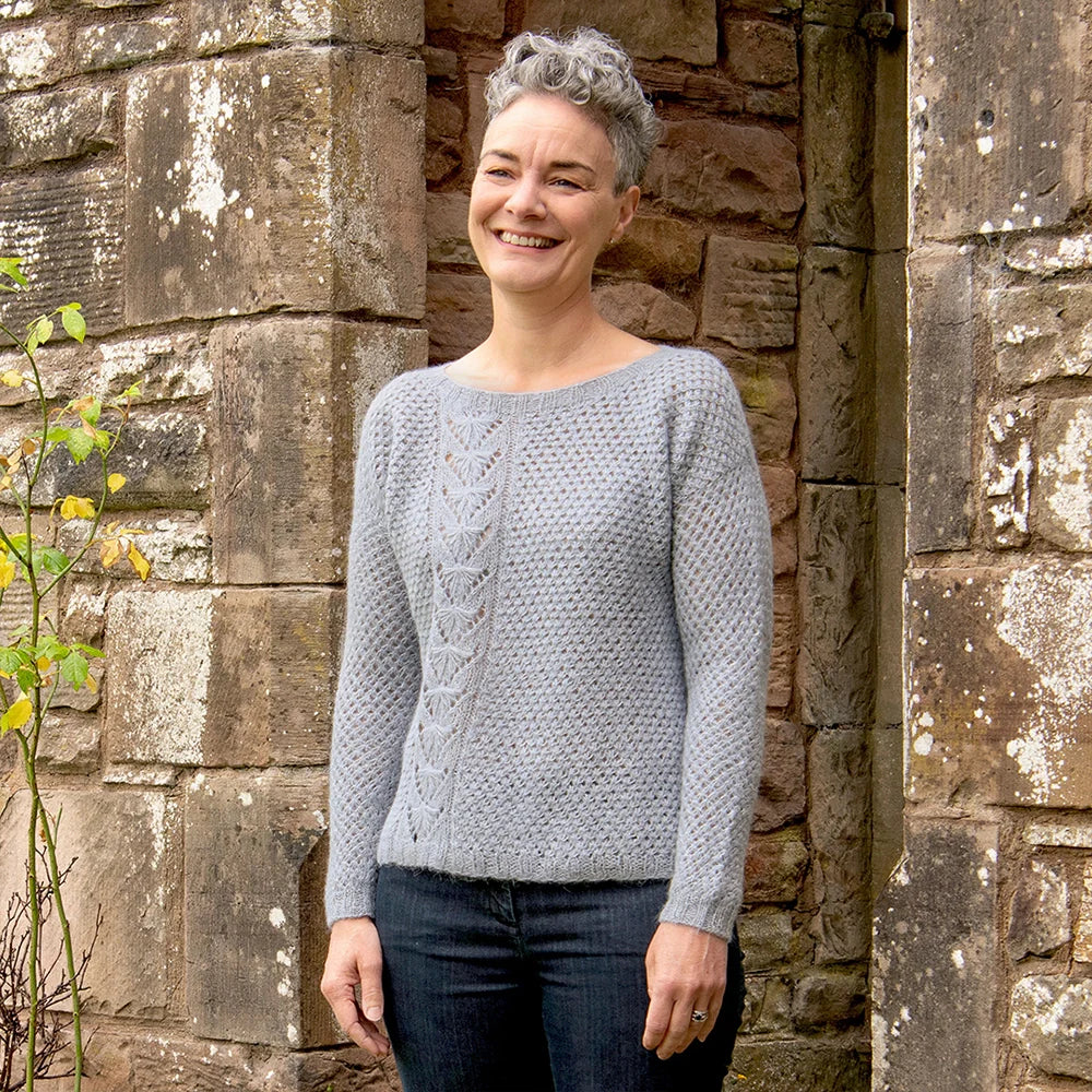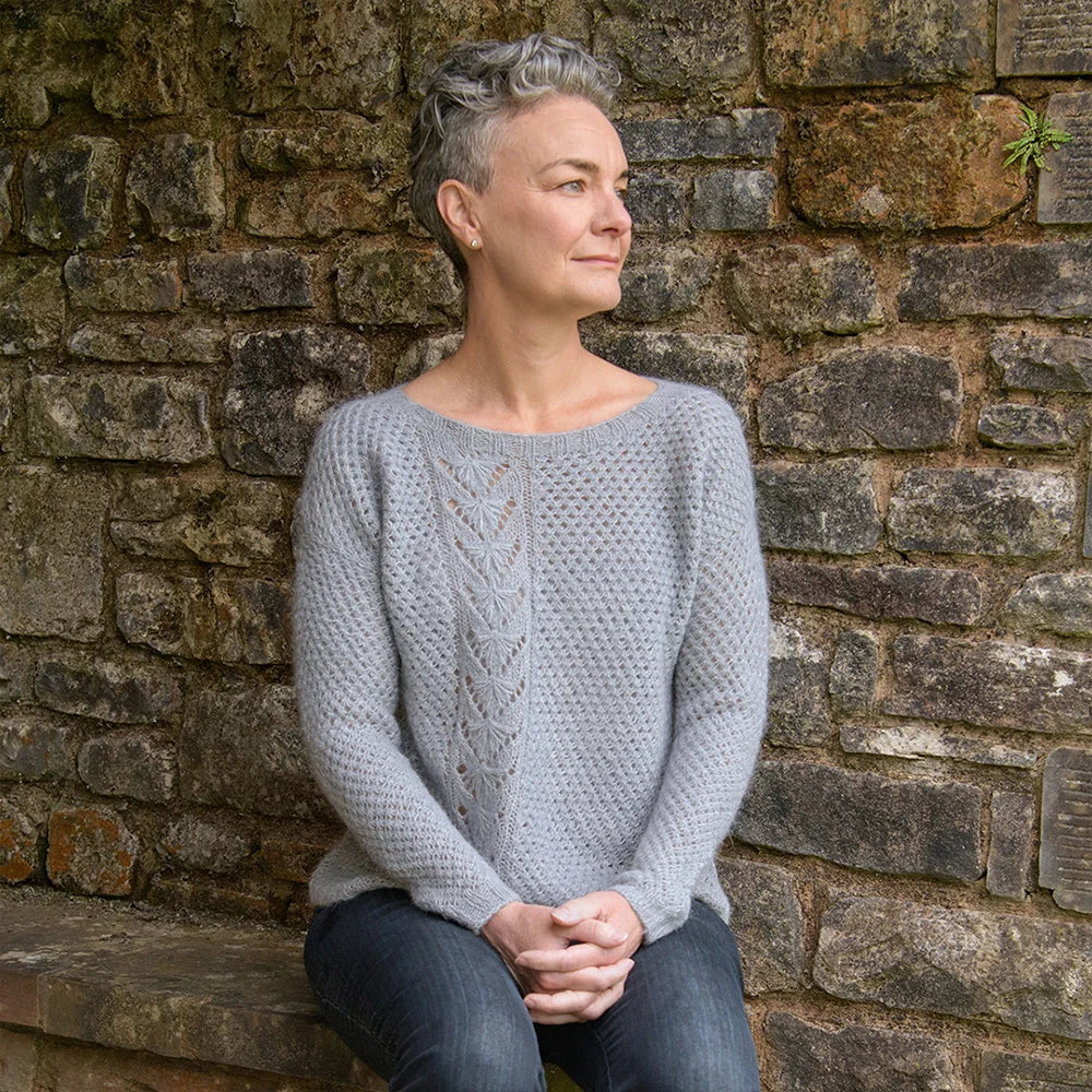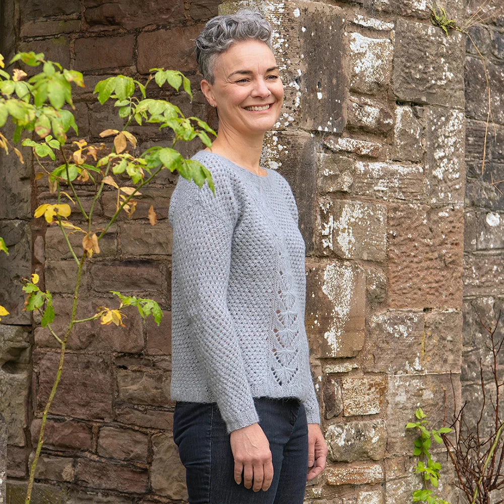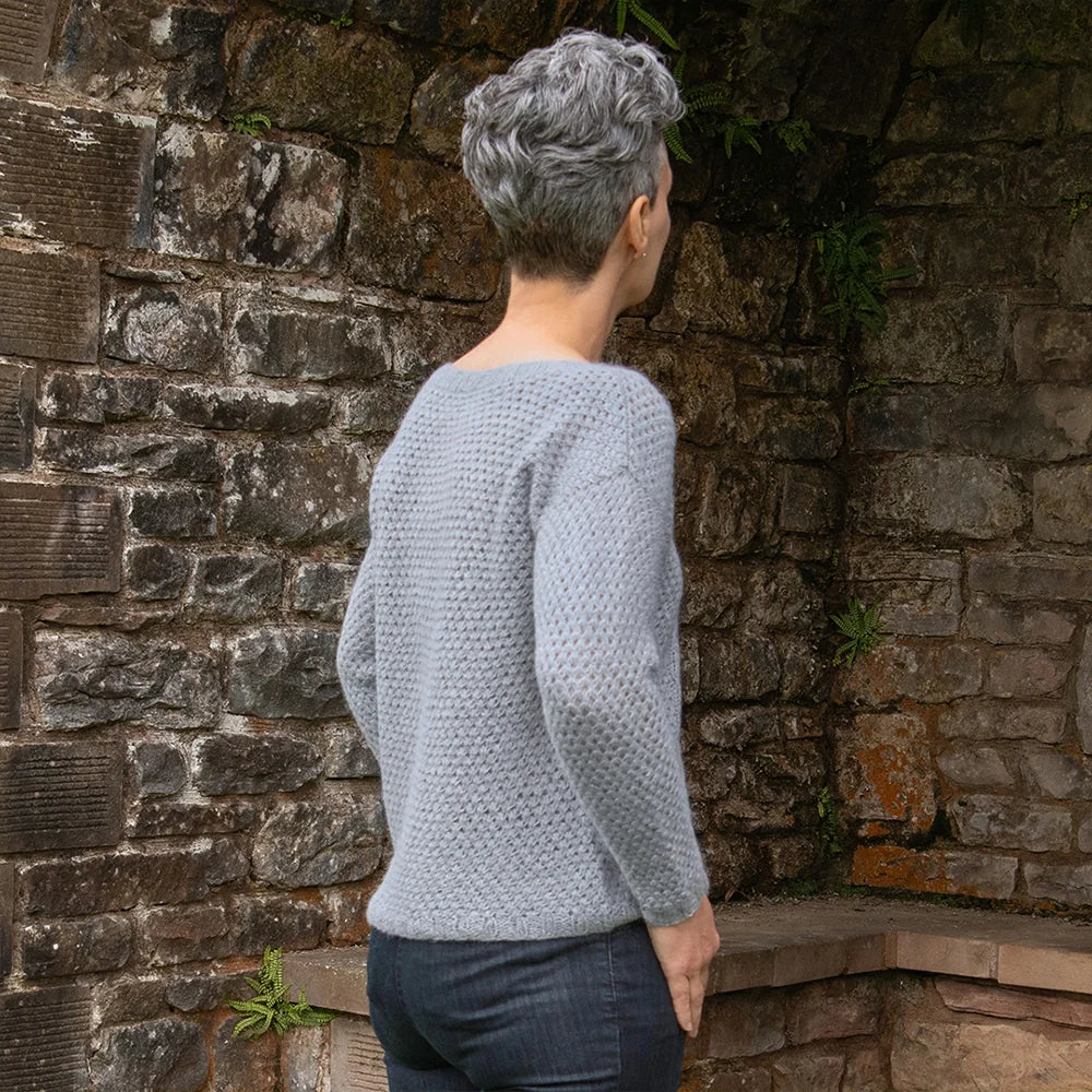 Rising Star Sweater is a delightful drop shoulder, wide crew-necked sweater with lots of beautiful texture. The ‘rising star’ of the pattern’s name is revealed in the single lacy motif panel that runs up the front of the sweater. Knit in Cirro, this sweater is incredibly light and so soft, you will have to feel it to believe it! With three to five inches of positive ease, Rising Star might just be the coziest sweater you ever make.