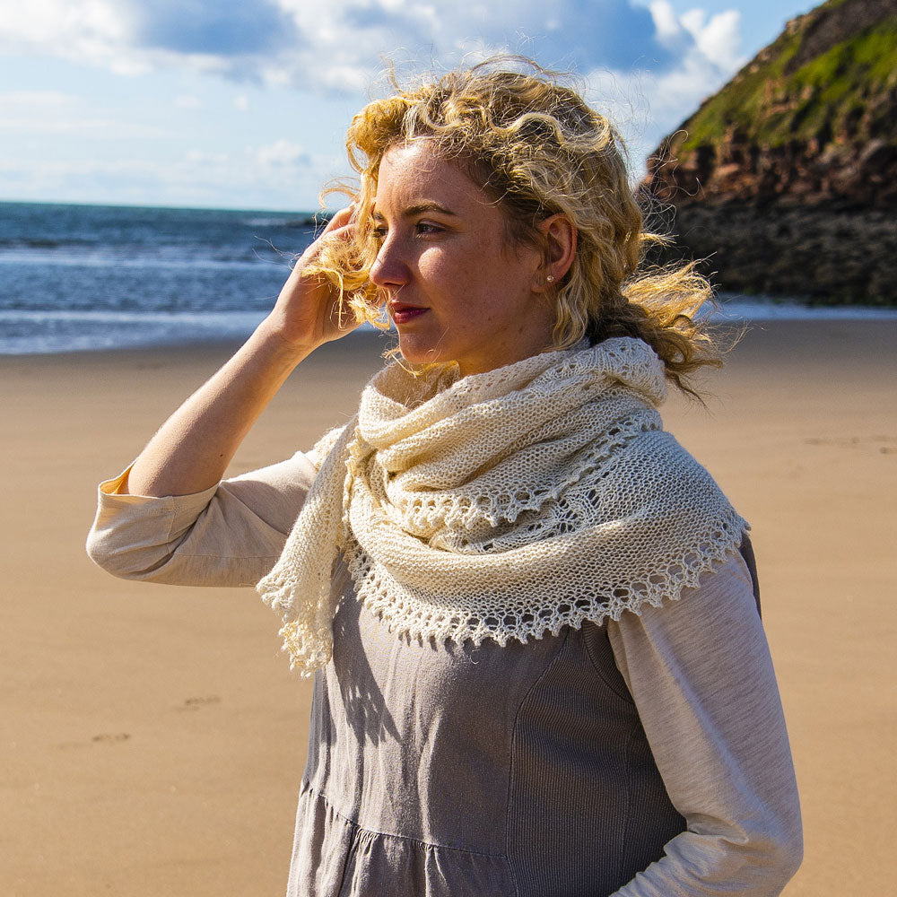 Simple lace panels fade into a meditative garter stitch, making our versatile Seacote shawl look different every time you wear it! Suitable for novices in short-row shaping and lace, this romantic shawl is knitted in More details