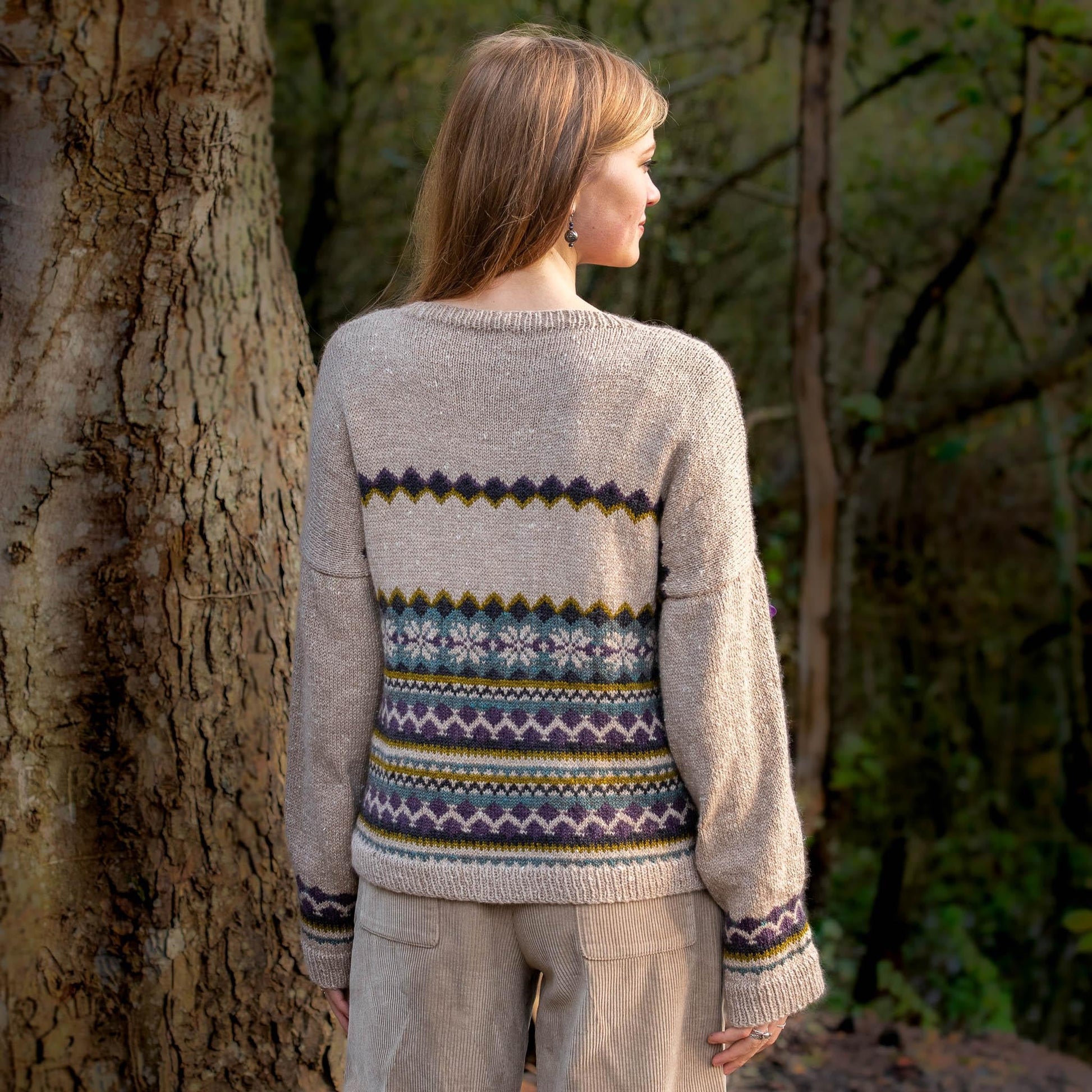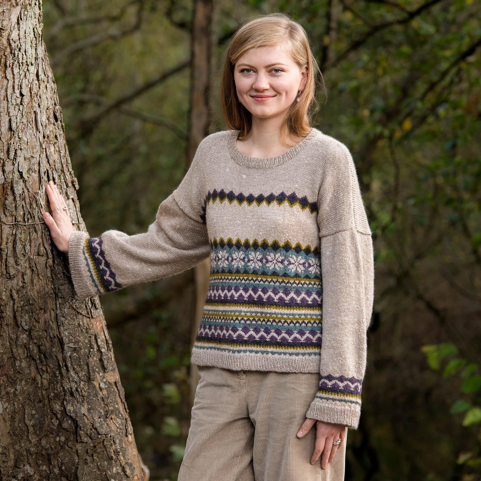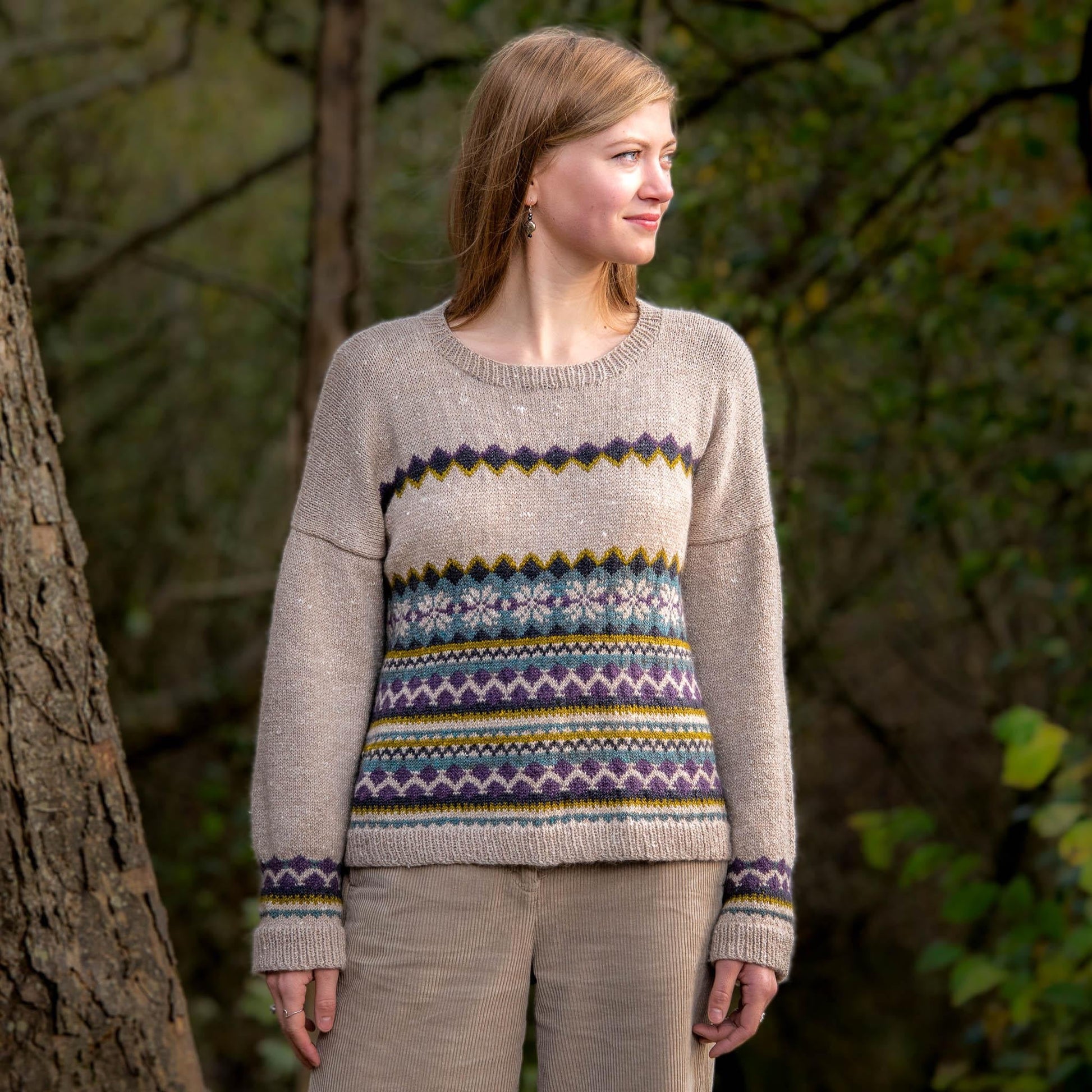Star Anise by Emma Wright is a luxurious, stranded color-work sweater knit in five shades of Acadia. More details