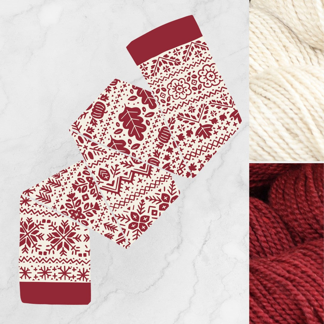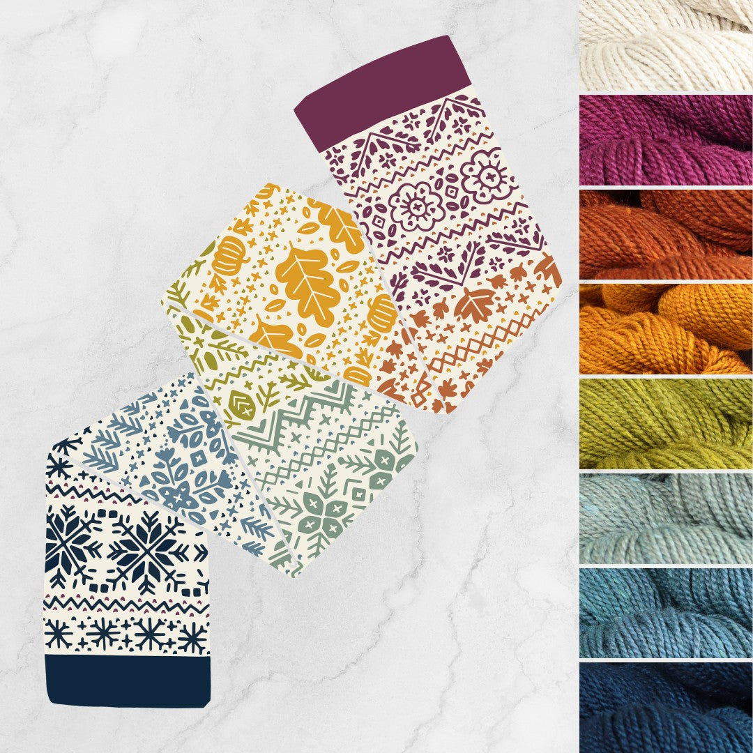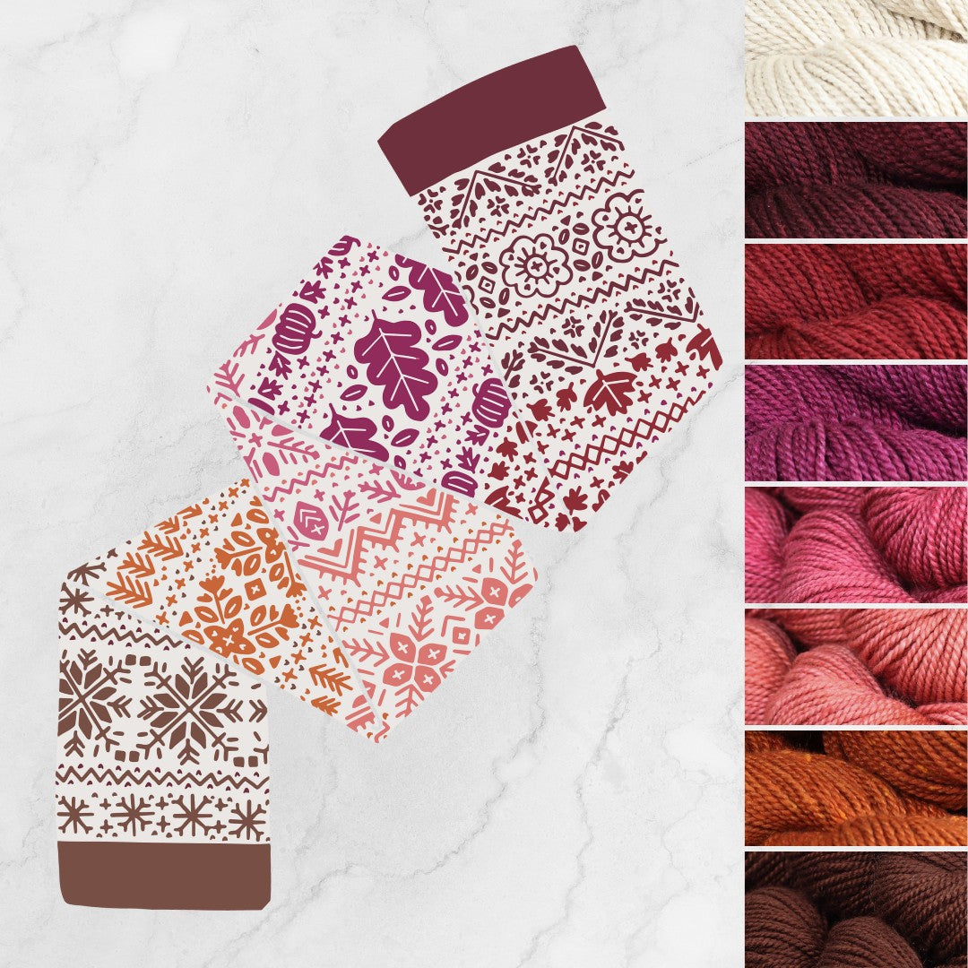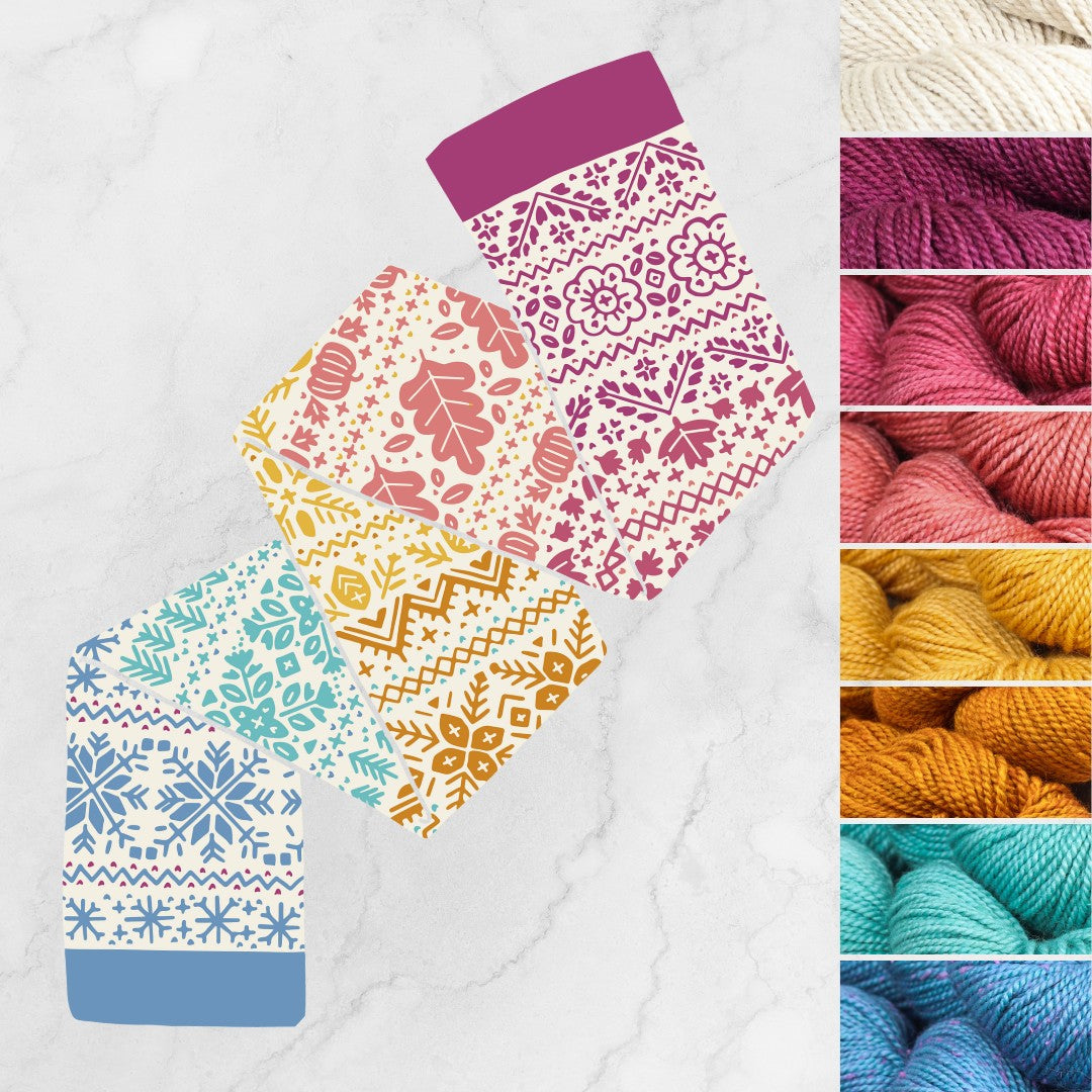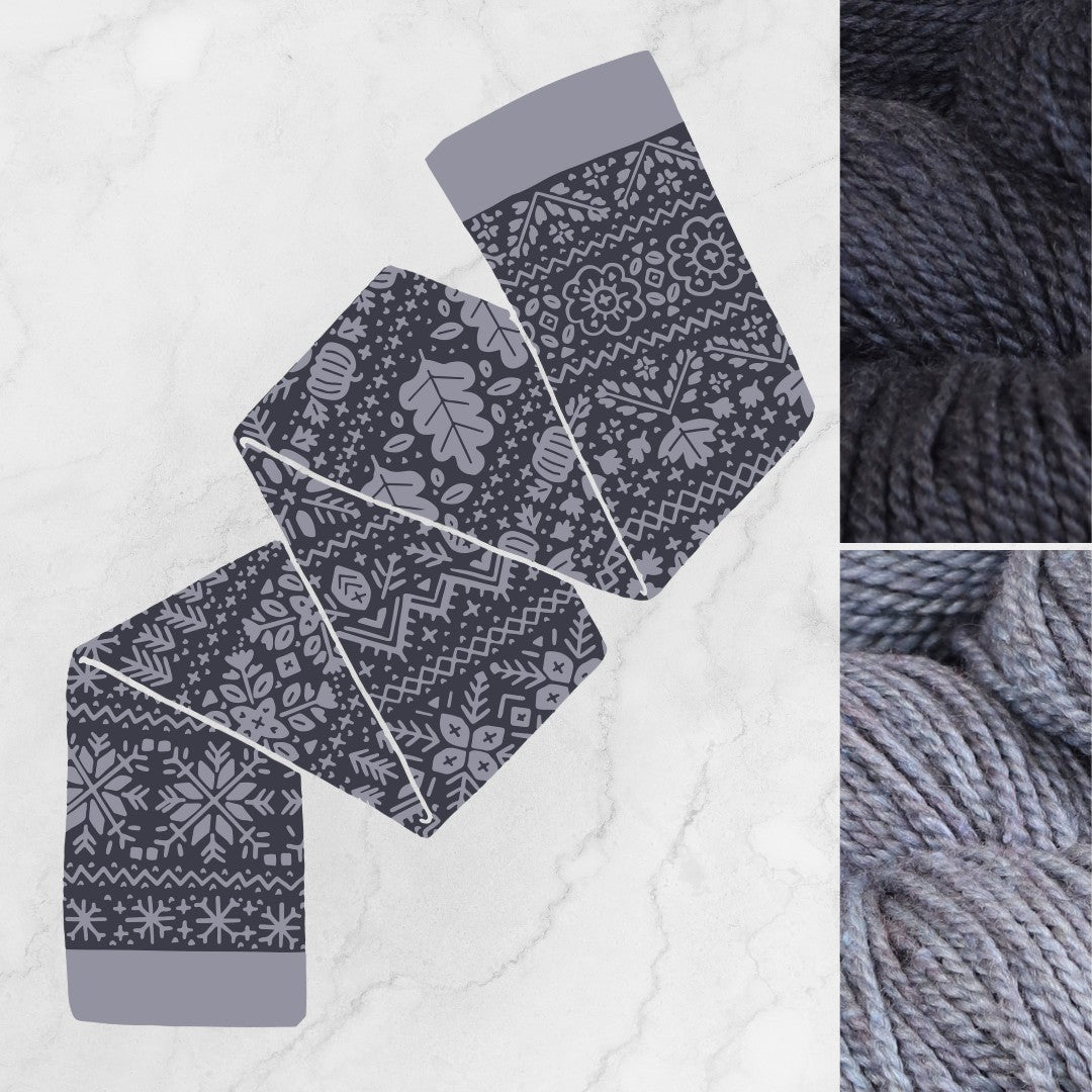 The pattern is worked in the round as a tube on circular needles, from end to end. Beginning with Judy’s Magic Cast On, you can work your custom design for the stranded colorwork until it reaches your desired length. The live stitches are then grafted closed, providing a seamless finish that matches the cast on.