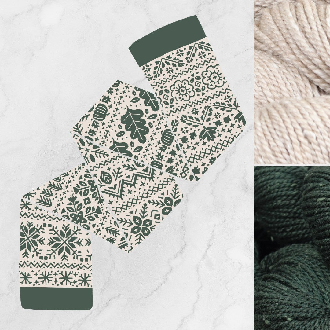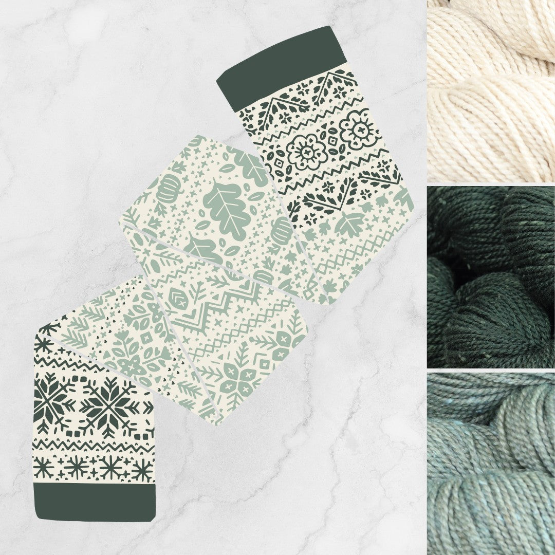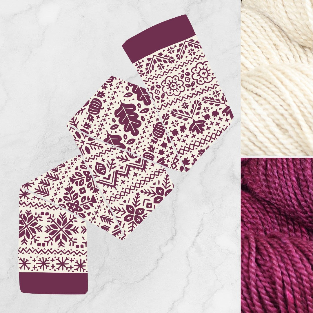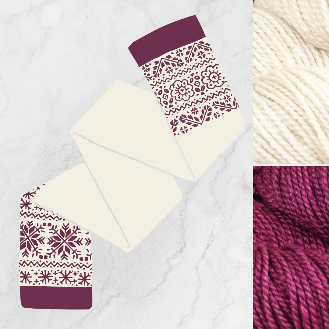 The pattern is worked in the round as a tube on circular needles, from end to end. Beginning with Judy’s Magic Cast On, you can work your custom design for the stranded colorwork until it reaches your desired length. The live stitches are then grafted closed, providing a seamless finish that matches the cast on.