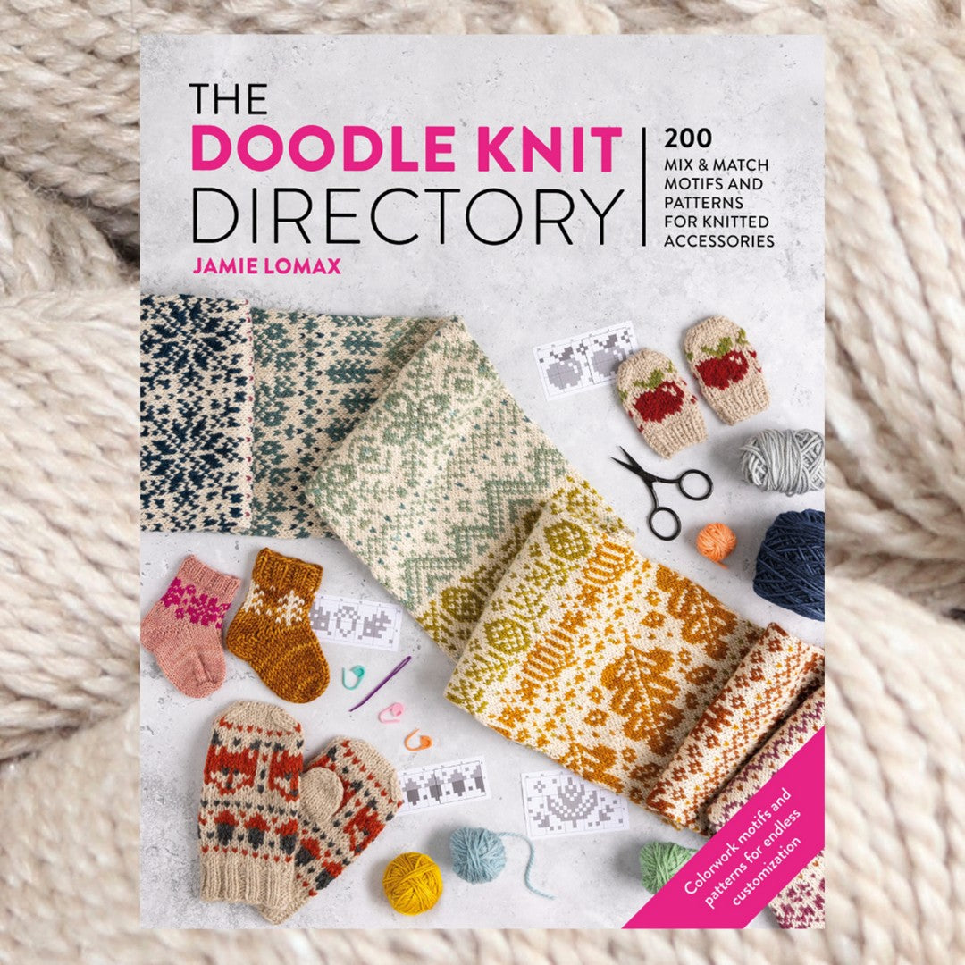 The Doodle Scarf pattern is available in The Doodle Knit Directory book by Jamie Lomax, a Seattle-based knitwear designer and owner of Pacific Knit Co. The book features 200 mix-and-match motifs and patterns for knitted accessories, including the Doodle Scarf. The designs are presented seasonally, with motifs ranging from flowers, leaves, and mushrooms to squirrels, sheep, and other birds and animals. There are also abstract designs that can be interspersed to break up patterns and add interest, giving you endless opportunities to doodle with your knitting.