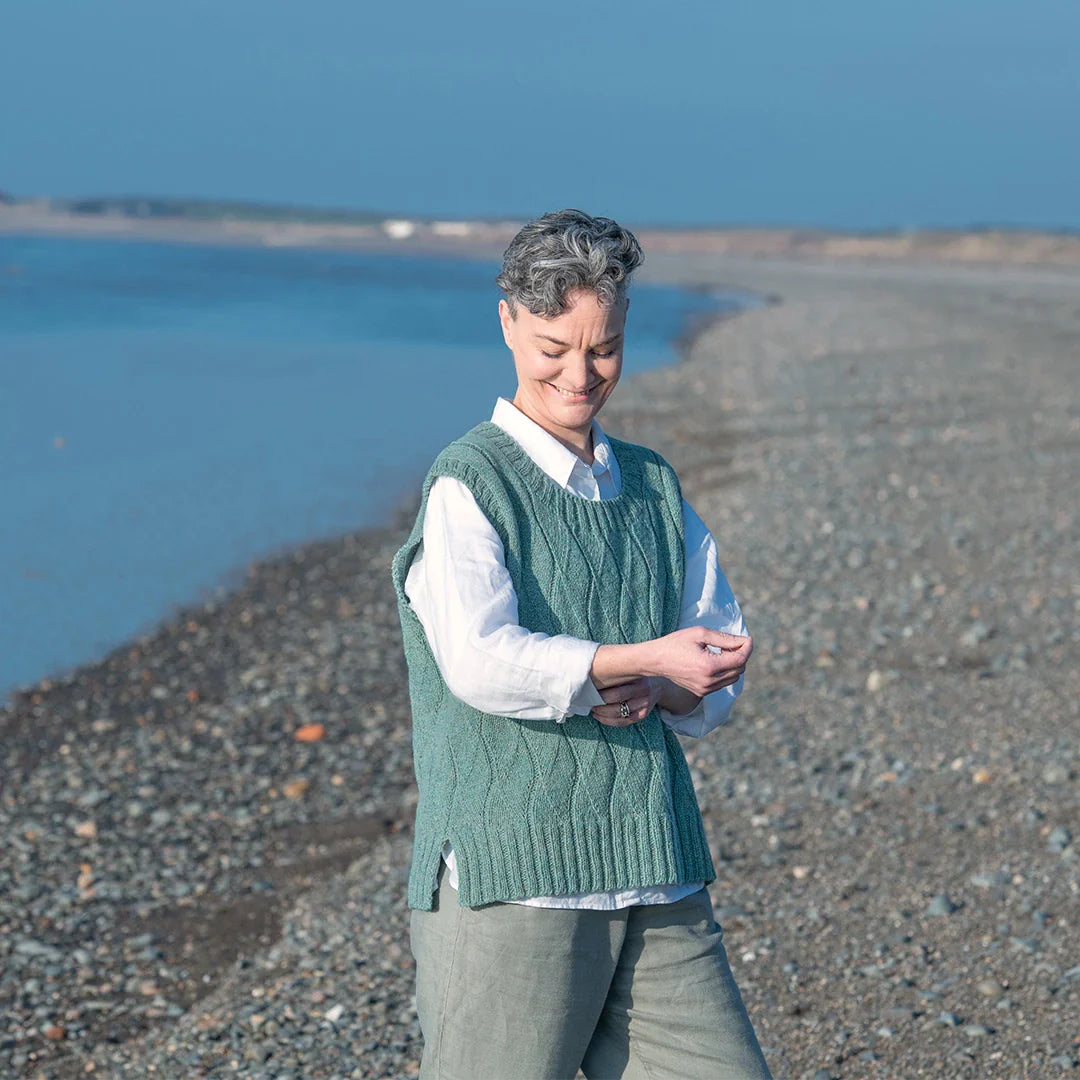 This sweater vest works up effortlessly in lofty DK-weight Lore, which is perfect for textures and making a light yet enveloping piece. Made from 100% lambswool from the English Romney sheep breed, this piece is guaranteed to keep you warm and cozy.