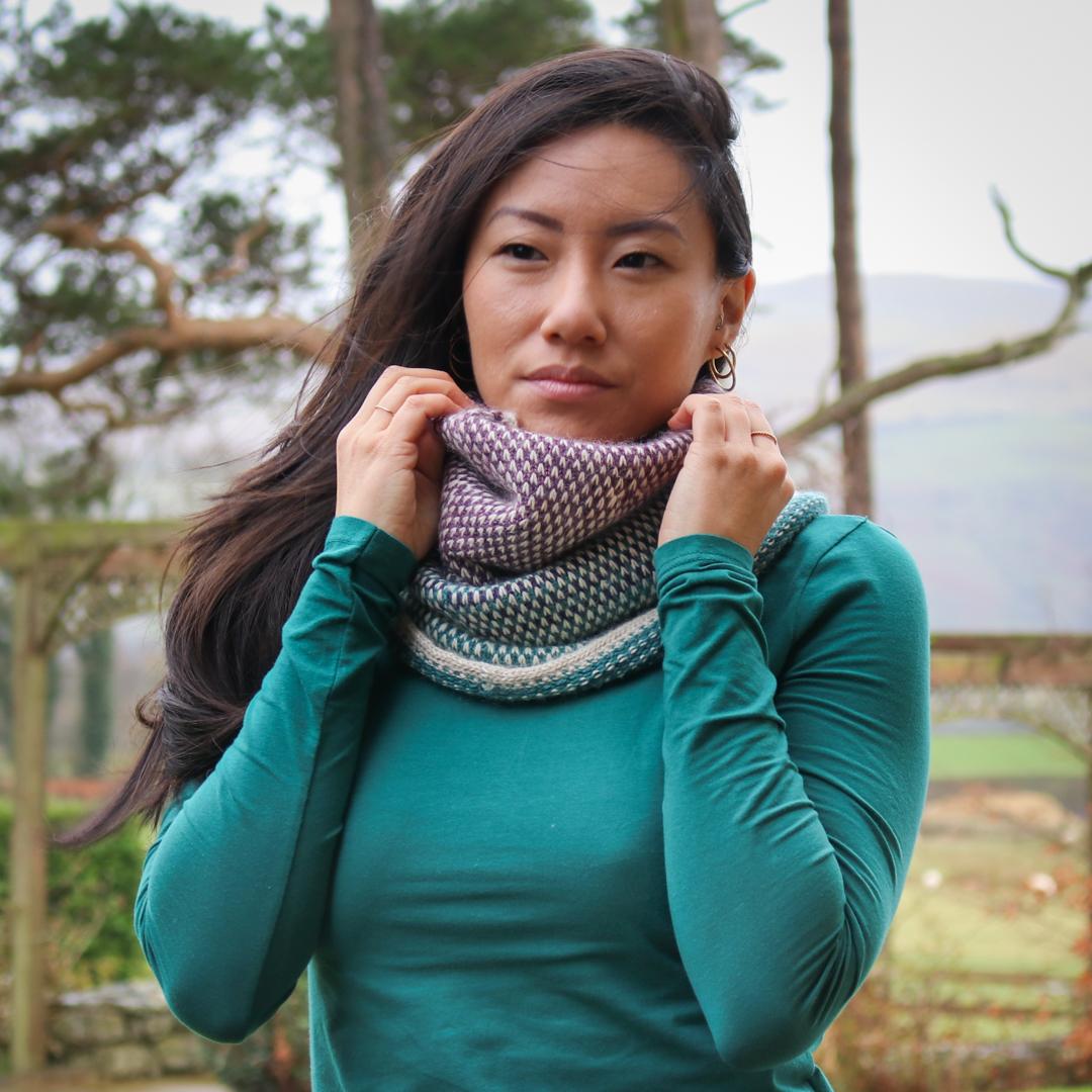 The sumptuous fibres in Road to China Light make this the softest yarn to wear against delicate neck skin, and the depth of the cowl allows you to really nestle into and feel surrounded by the luxurious softness.