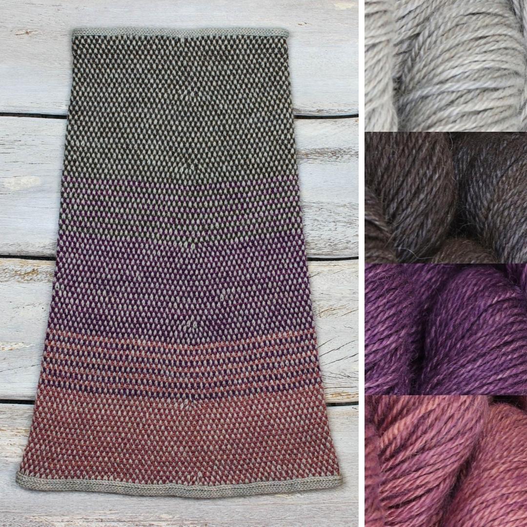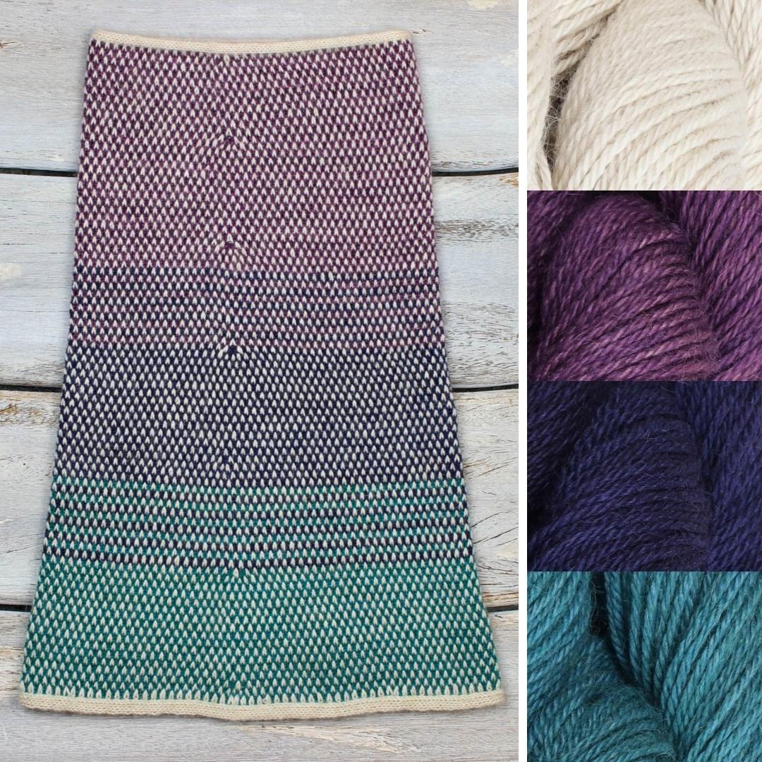 The Milky Way Cowl by Bea Naretto is a deep cone-shaped cowl with I-cord trim and a gradient of rich, jewel tones behind the bright points of the light main color, created with stranded colorwork.