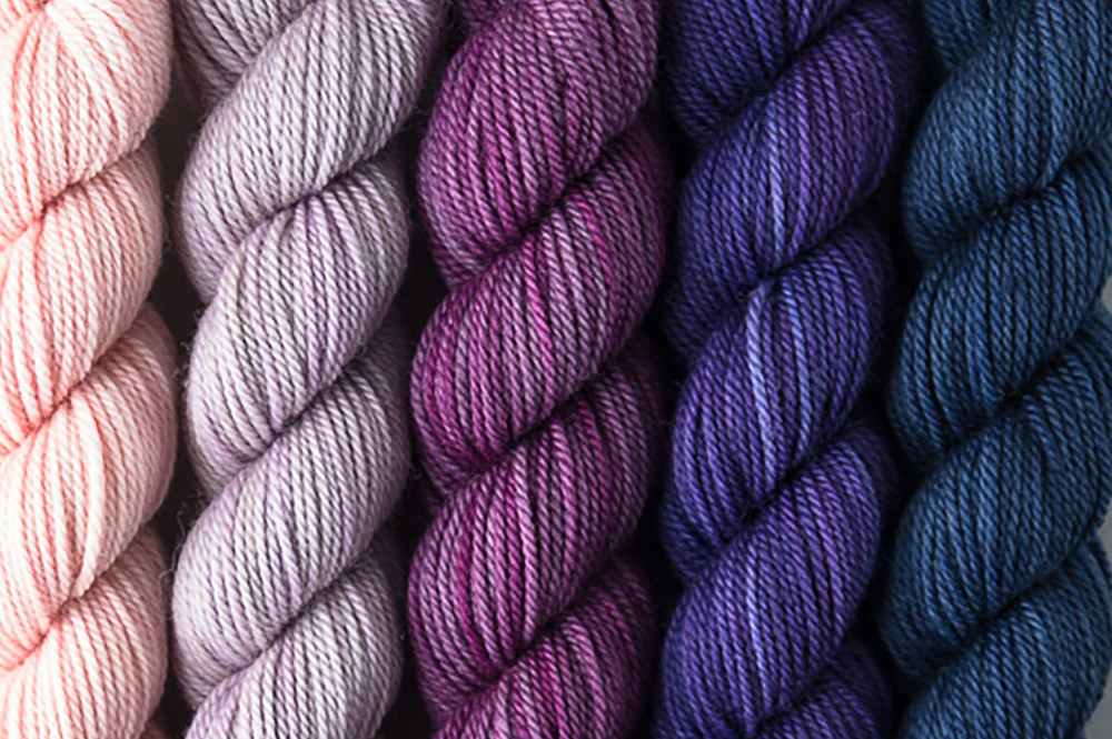 Party of five are cute mini skein sets from SweetGeorgia Yarn made from their amazing Tough Love Sock.